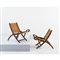 Coppia di sedie pieghevoli modello "Ninfea", struttura in legno di noce, spalliera e seduta in midollino intrecciato. Lievi segni d’uso.