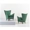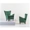 Coppia di poltrone disegnate per l’Hotel Bristol di Merano, struttura in legno con imbottitura e rivestimento in tessuto verde.
