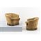 Coppia di poltrone con struttura in legno, imbottitura con rivestimento in tessuto di velluto verde.