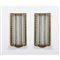 Coppia di lampade da parete a tre luci con struttura in ottone, diffusore trilaterale con tre vetri incolore stampati e ondulati. Un vetro laterale incollato.