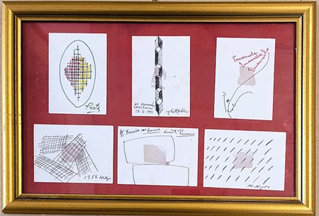 Collezione di n.6 disegni in unica cornice alcuni datati e firmati (Nigro, Festa e Glattfelder) - Riporta lievi difetti