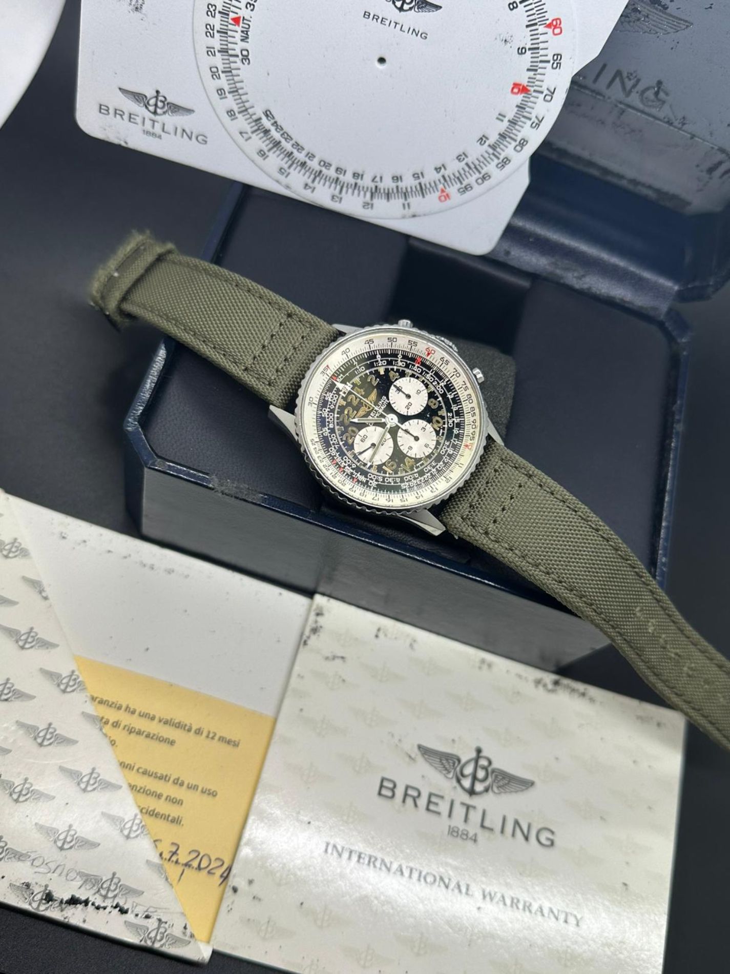 Marca Breitling Modello (Orologio) Navitimer Cosmonaute Numero di referenza A12019 Carica Manuale Materiale della cassa Acciaio Materiale cinturino Pelle Anno di produzione 1991 Condizione Usato (Buono) L'articolo presenta segni di usura percepibili alla vista e al tatto, come graffi, scalfitture o piccole ammaccature. Corredo Con scatola originale e documenti originali Carica Manuale Cassa Materiale della cassa Acciaio Diametro 41 mm Impermeabile 3 ATM Materiale lunetta Acciaio Vetro Vetro zaffiro Quadrante Nero Numeri sul quadrante Arabi Cinturino Materiale cinturino Pelle Colore cinturino Nero Chiusura Chiusura ad ardiglione Materiale chiusura Acciaio Funzioni