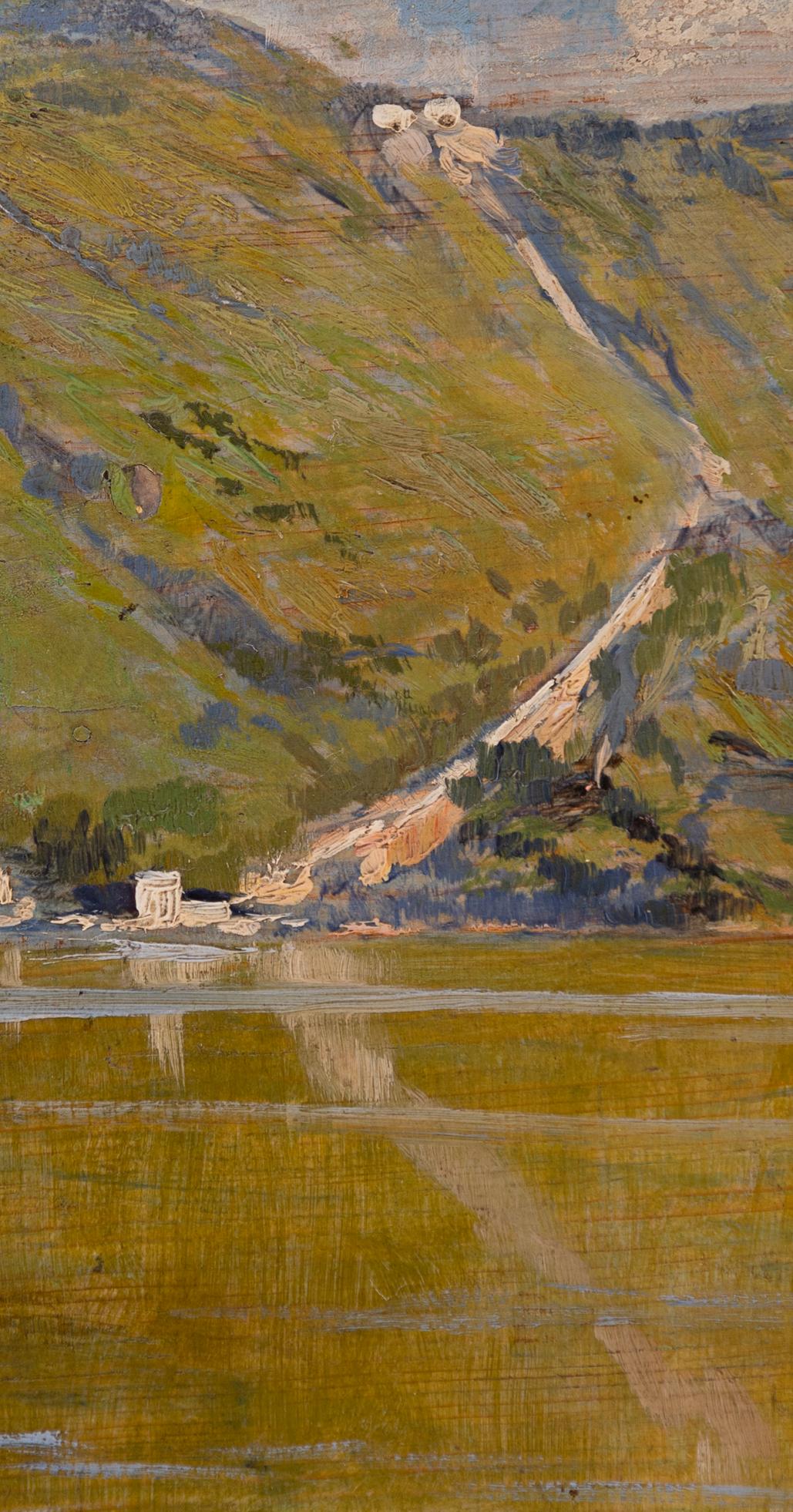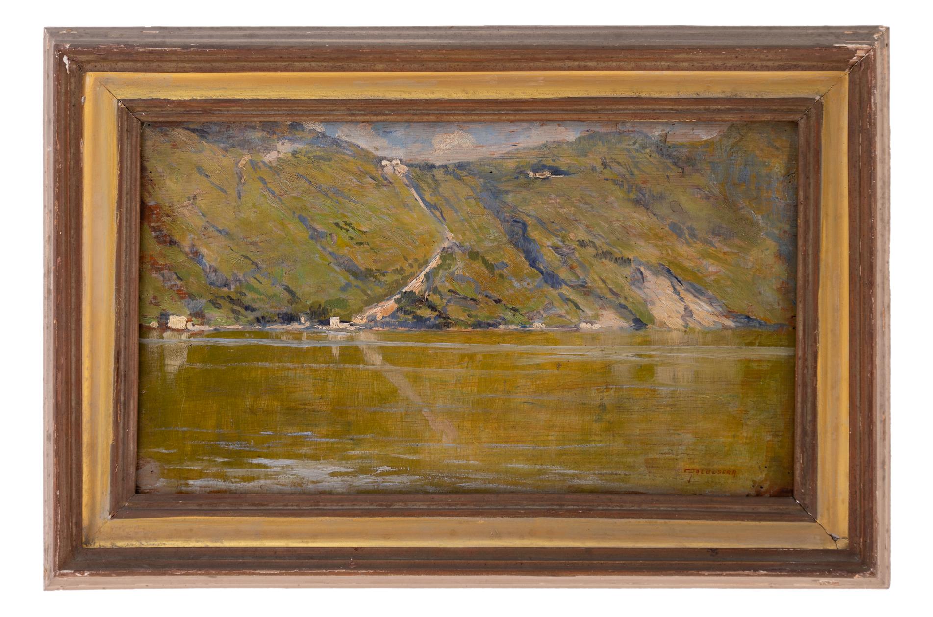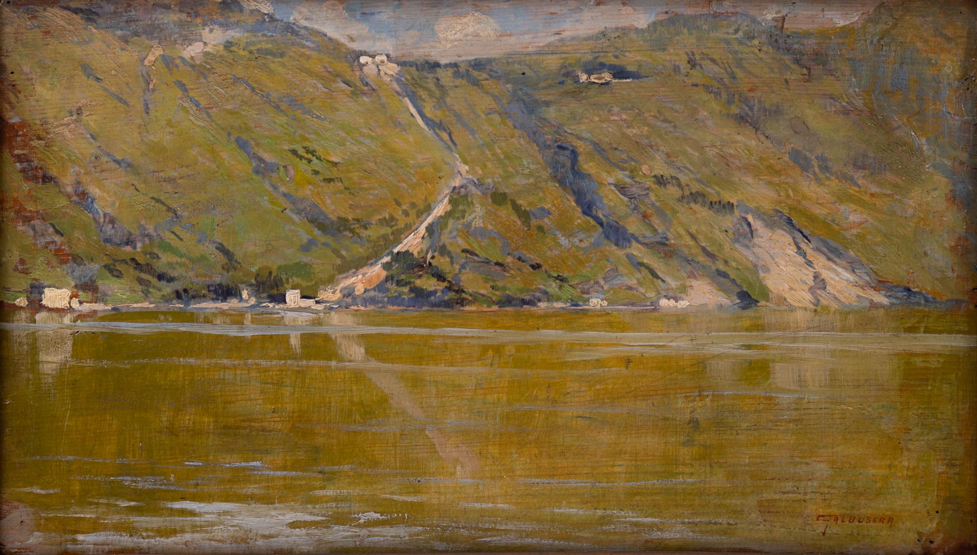 Gioacchimo Galbusera - Funicolare sul Lago di Lugano - Milano 1870 - Lugano 1944 - Olio su cartone cm 22x39,5