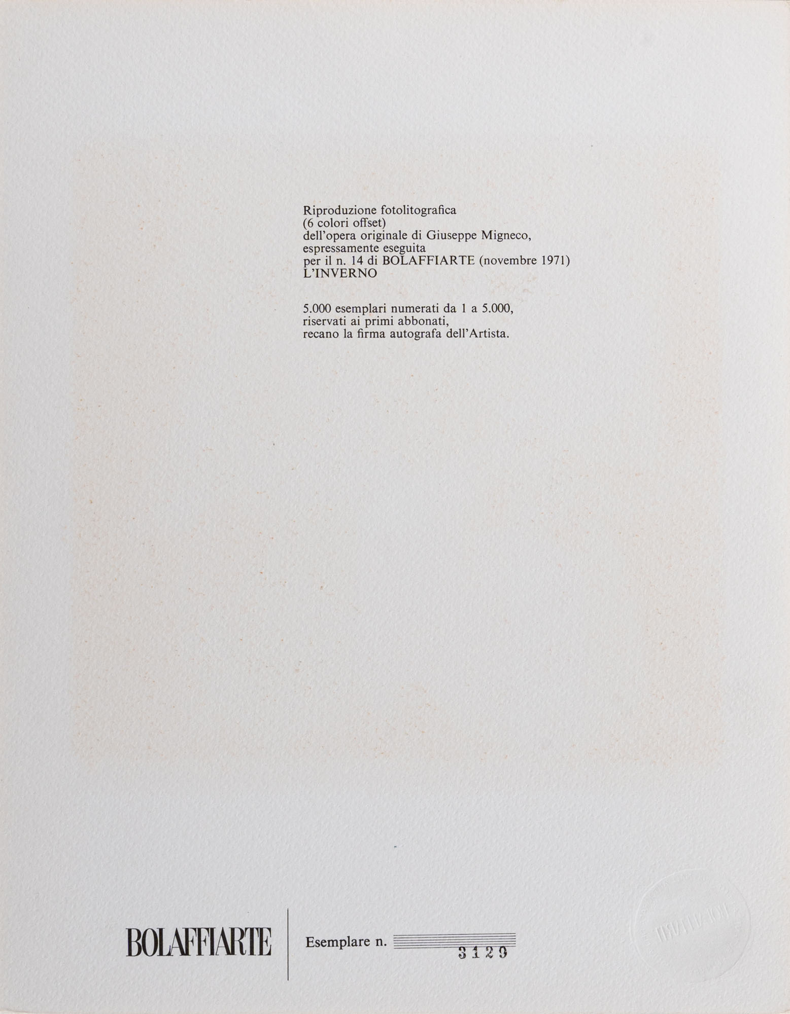 GIUSEPPE MIGNECO(1908 - 1997)L'inverno1971Litografia con catalogo, es. 3129/500030 x 23,5 cmFirmata in basso a destraNumerazione al retro