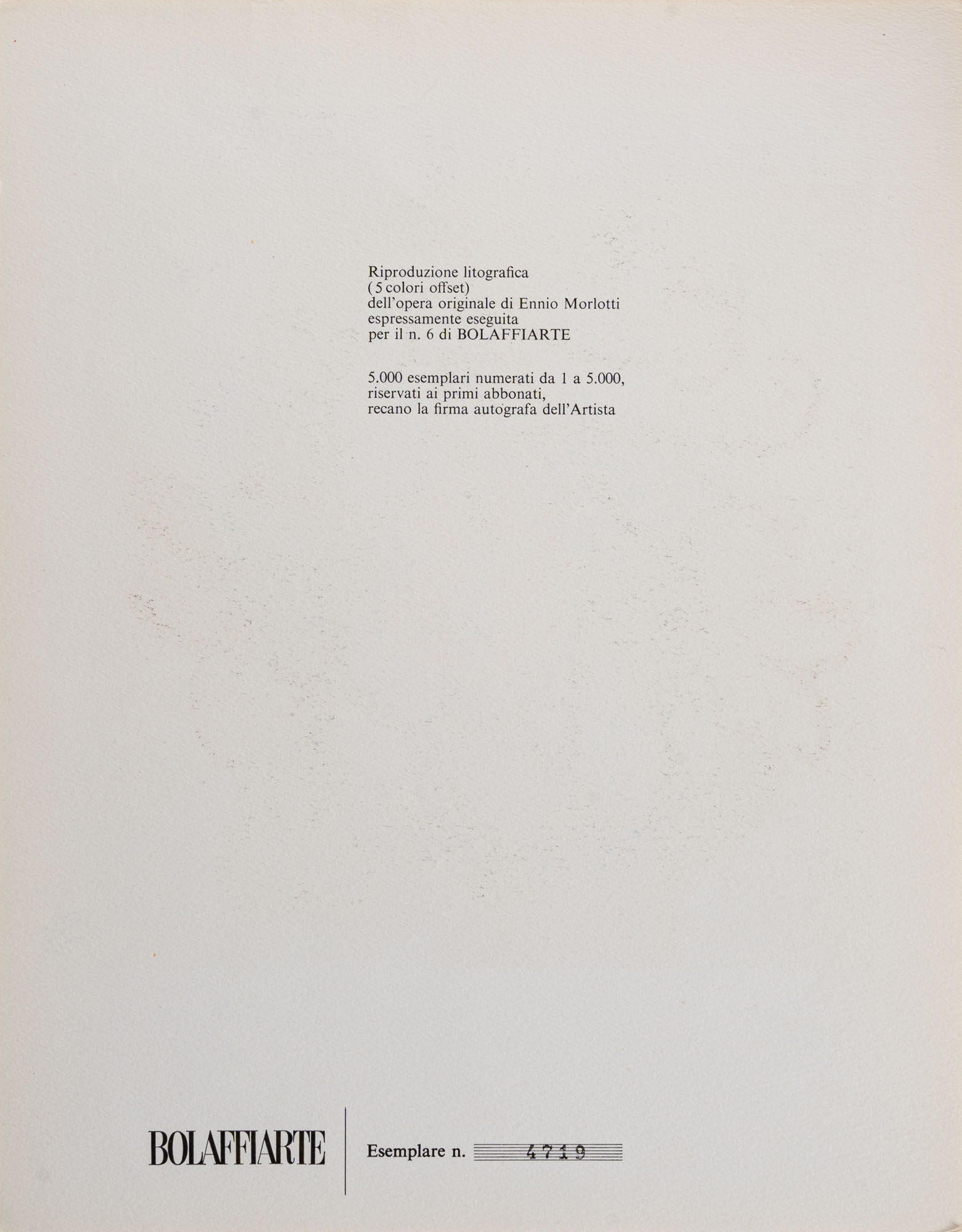 ENNIO MORLOTTI(1910 - 1992)Numero 61971Litografia con catalogo, es. 4719/500030 x 23,5 cmFirmata in basso a destraNumerazione al retro