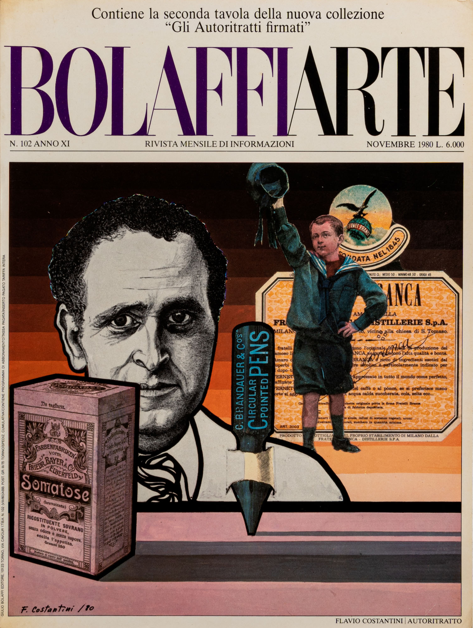 FLAVIO COSTANTINI(1926 - 2013)Senza titolo (autoritratto)1980Litografia con catalogo, es. 887/500014 x 10,5 cmFirmata in basso al centroNumerazione al retro