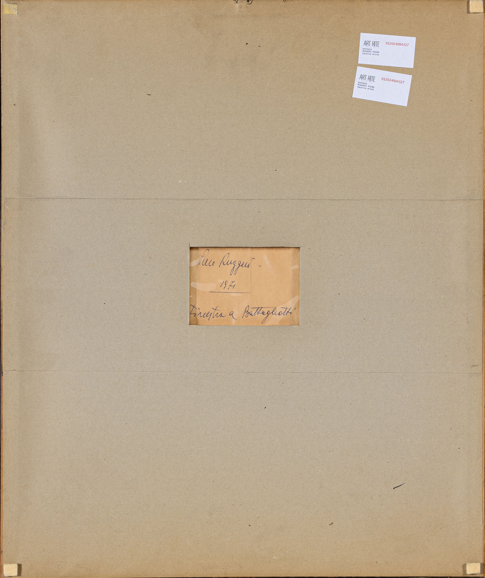 PIERO RUGGERI(1930 - 2009)Finestra a Battagliotti1971Tecnica mista su carta34 x 24,5 cmFirmata in basso a destraFirma, data e titolo al retroPROVENIENZA:Collezione privata, Milano