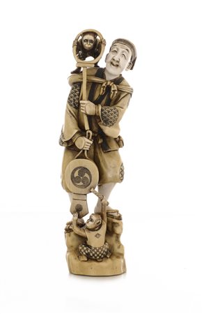 AVORIO GRUPPO IN AVORIO, GIAPPONE, XIX SECOLO, raffigurante saltimbanco con...