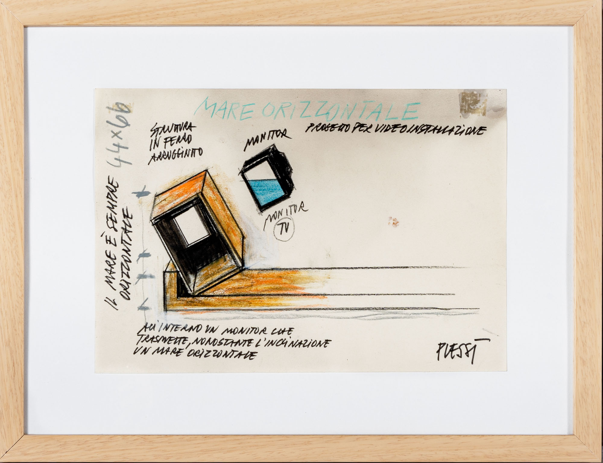 FABRIZIO PLESSI(1940)Mare orizzontale (Progetto per videoinstallazione)Tecnica mista su carta20,5 x 29,5 cmFirmata in basso a destra e titolata in alto al centro