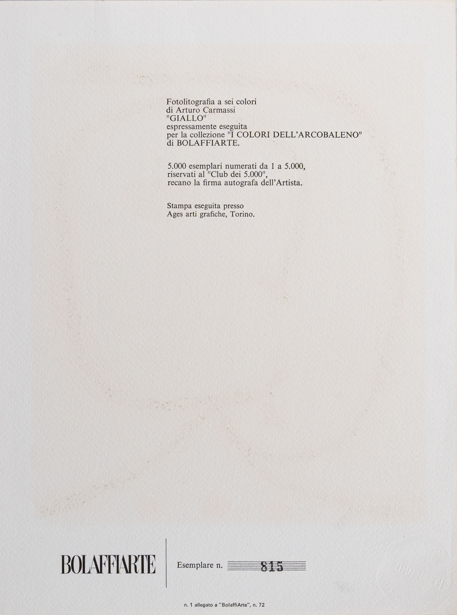 ARTURO CARMASSI(1925 - 2015)Giallo1977Litografia con catalogo, es. 815/500028 x 21 cmSiglata in basso a destraNumerazione al retro