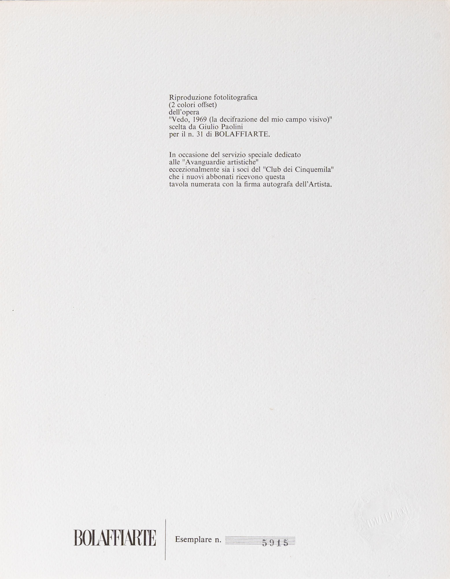 Lotto 247 | Vedo, 1969 (la decifrazione del mio campo visivo)