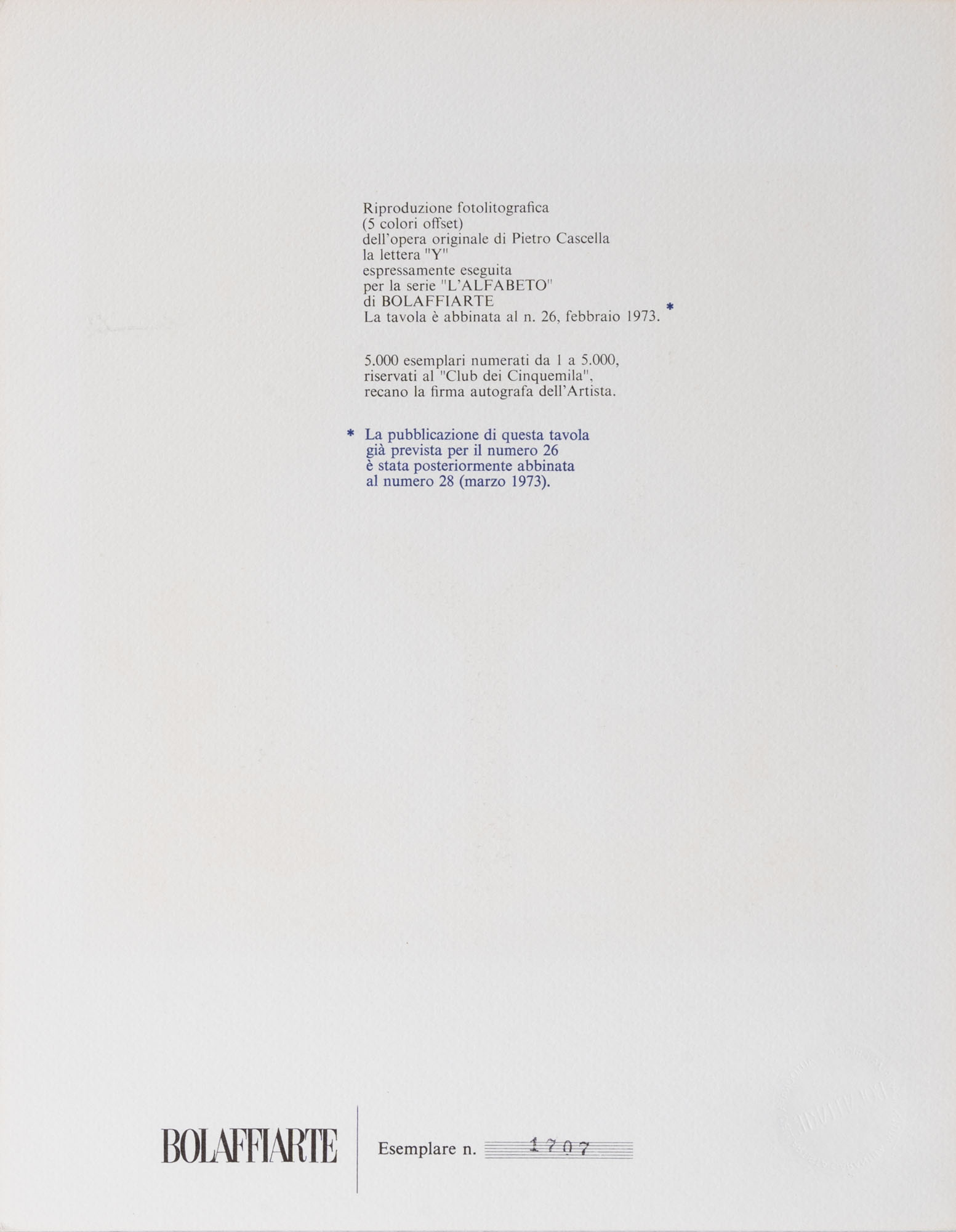 PIETRO CASCELLA(1921 - 2008)Lettera Y1973Litografia con catalogo, es. 1707/500030 x 23,5 cmFirmata in basso a destraNumerazione al retro