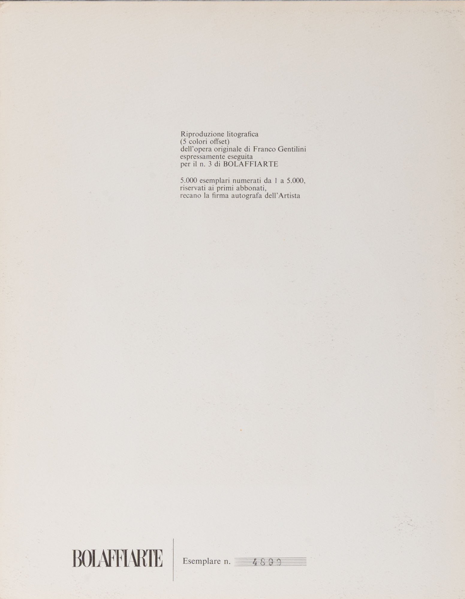 FRANCO GENTILINI(1909 - 1981)Numero 31970Litografia con catalogo, es. 4899/500030 x 23,5 cmFirmata e datata in basso a destraNumerazione al retro