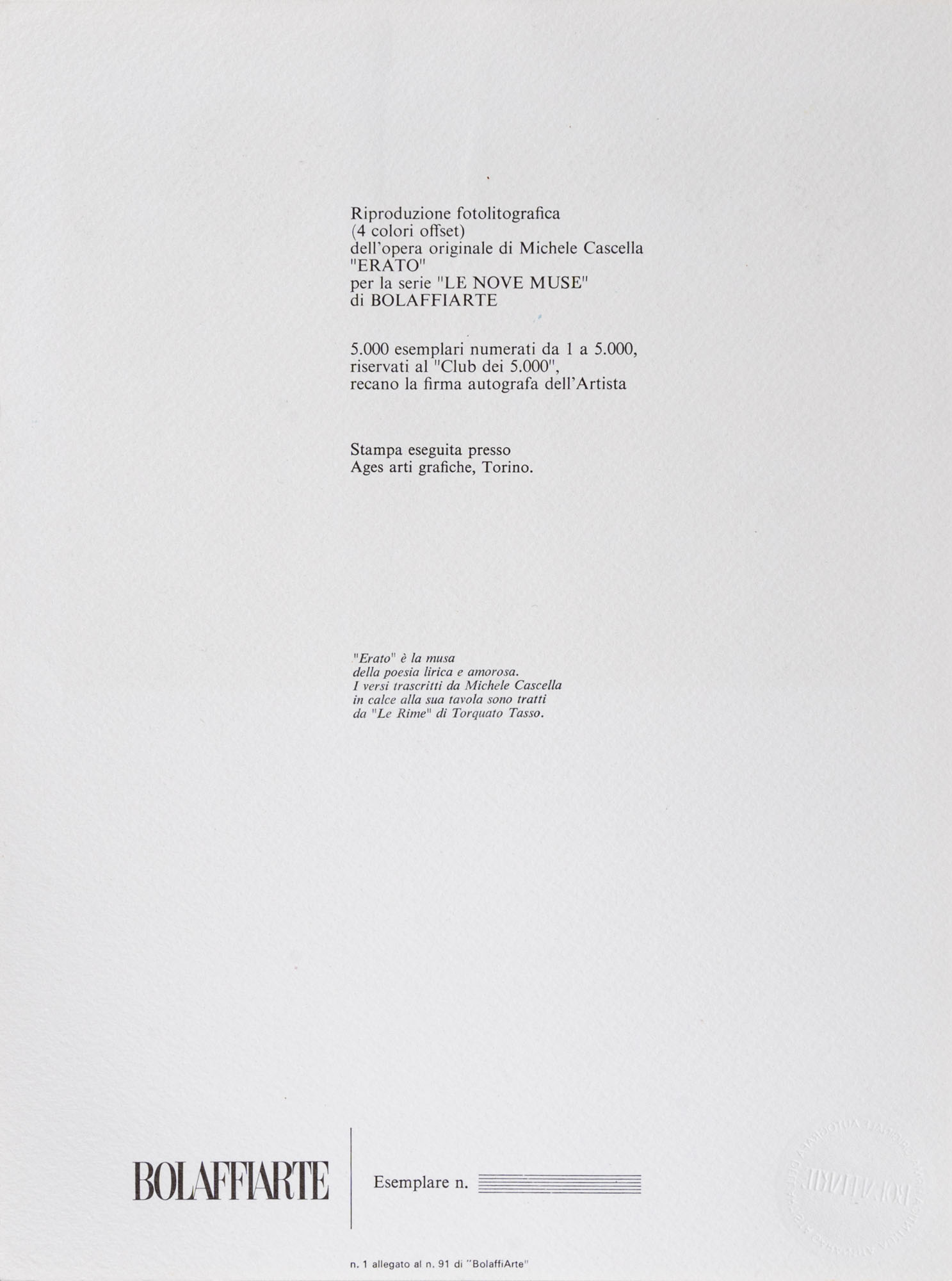 MICHELE CASCELLA(1892 - 1989)Erato1979Litografia con catalogo28 x 21 cmFirmata in basso a destra
