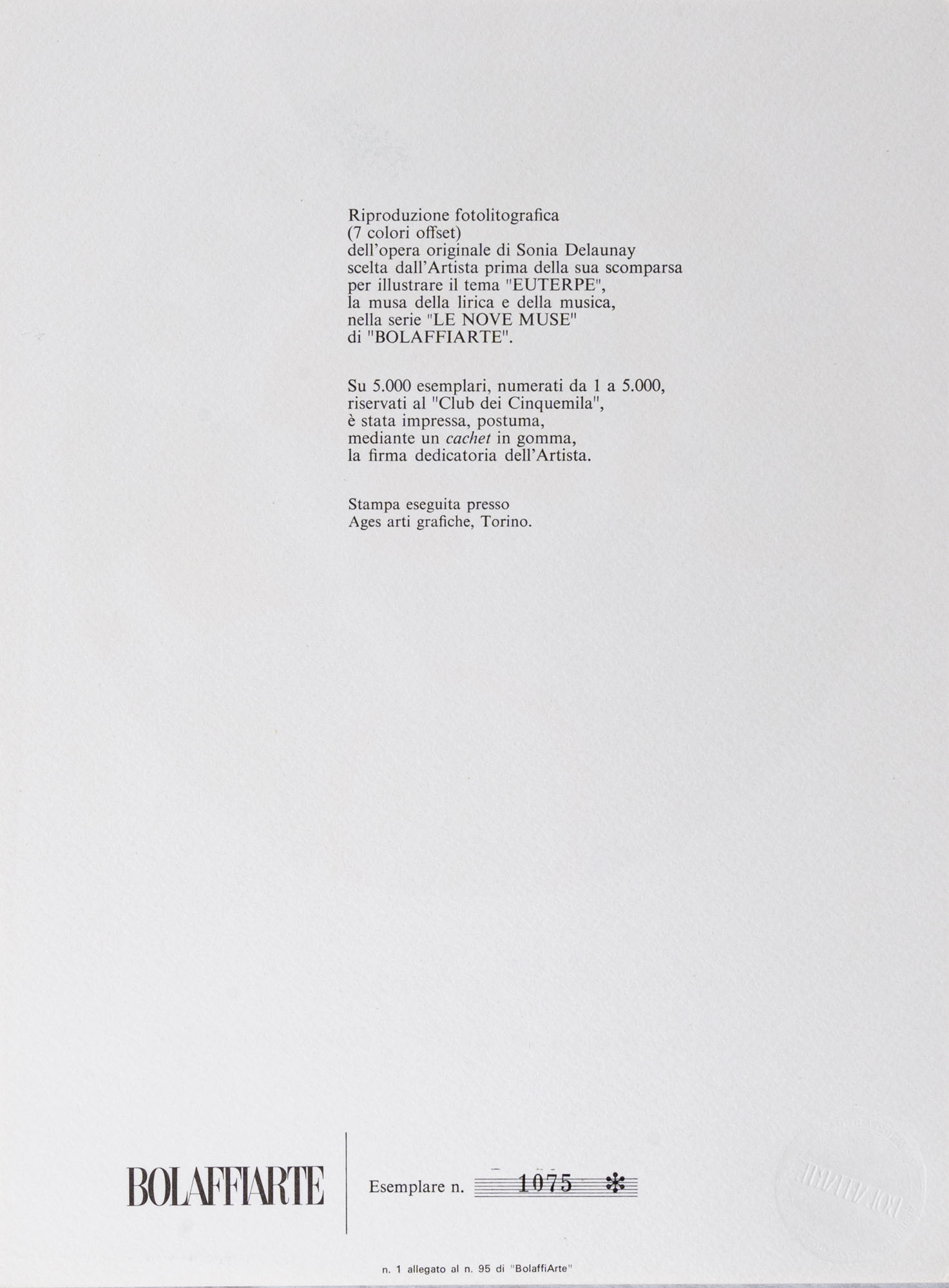 SONIA DELAUNAY(1885 - 1979)Euterpe1980Litografia con catalogo, es. 1075/500028 x 21 cmNumerazione al retro