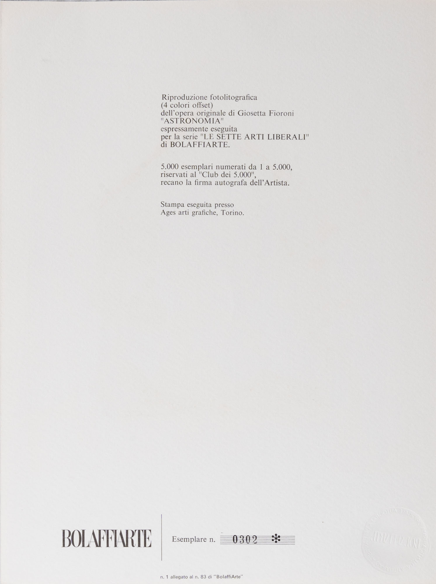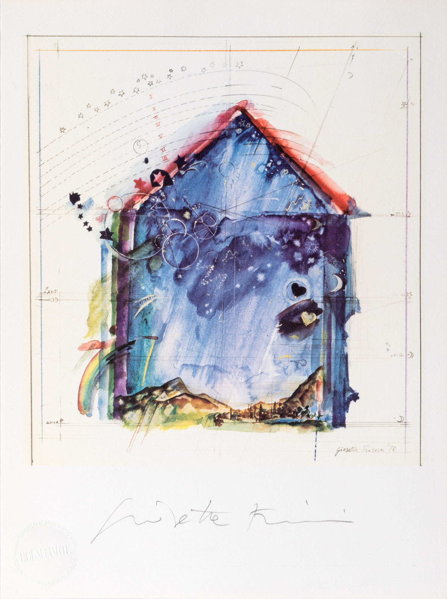 GIOSETTA FIORONI(1932)Astronomia1978Litografia con catalogo, es. 302/500028 x 21 cmFirmata in basso al centroNumerazione al retro