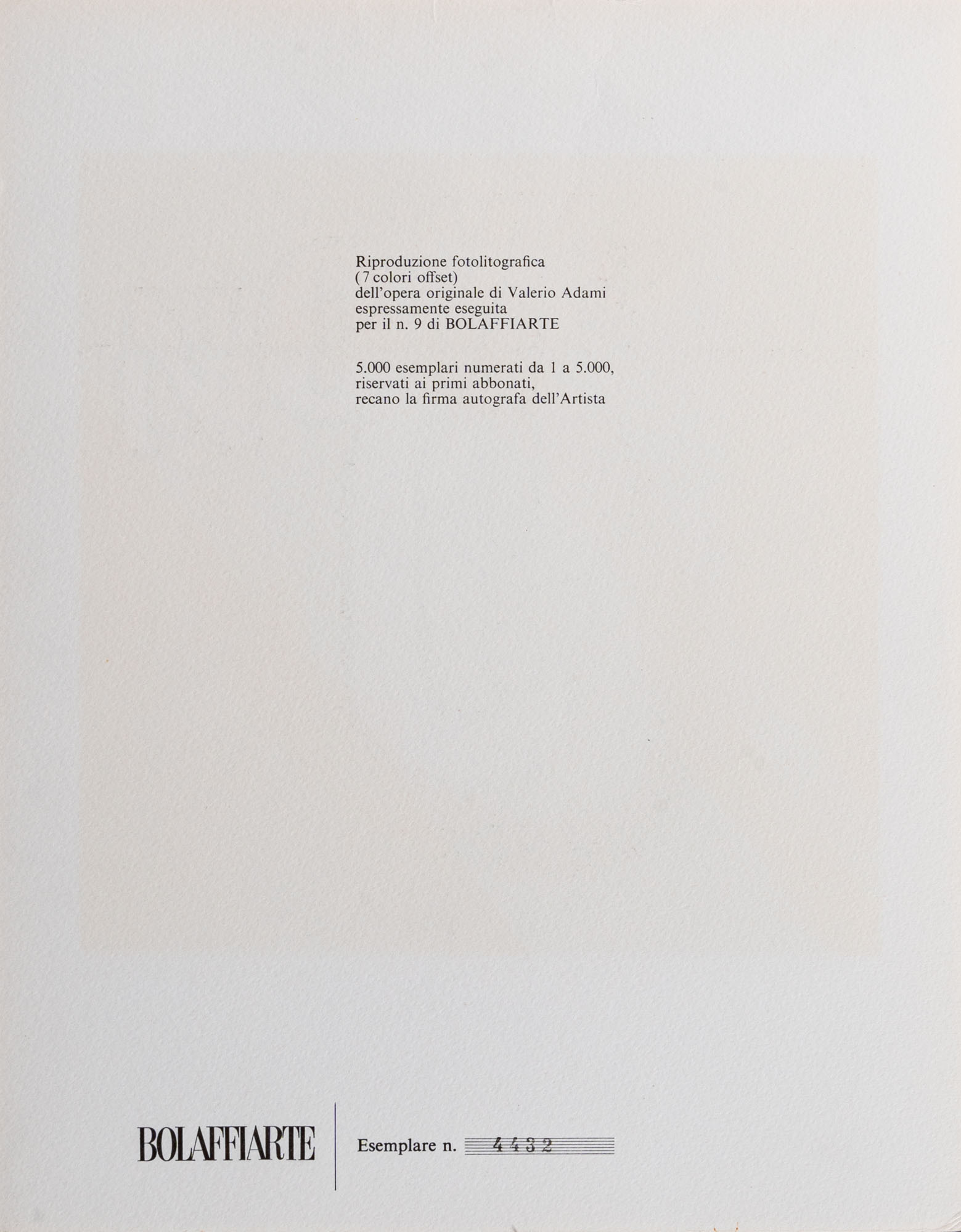 VALERIO ADAMI(1935)Numero 91971Litografia con catalogo, es. 4432/500030 x 23,5 cmFirmata in basso al centroNumerazione al retro