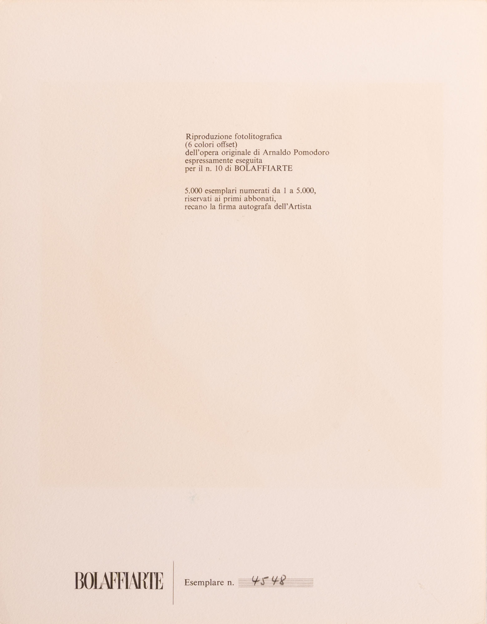 ARNALDO POMODORO(1926)Numero 101971Litografia con catalogo, es. 4548/500030 x 23,5 cmFirmata e datata in basso a destraNumerazione al retro