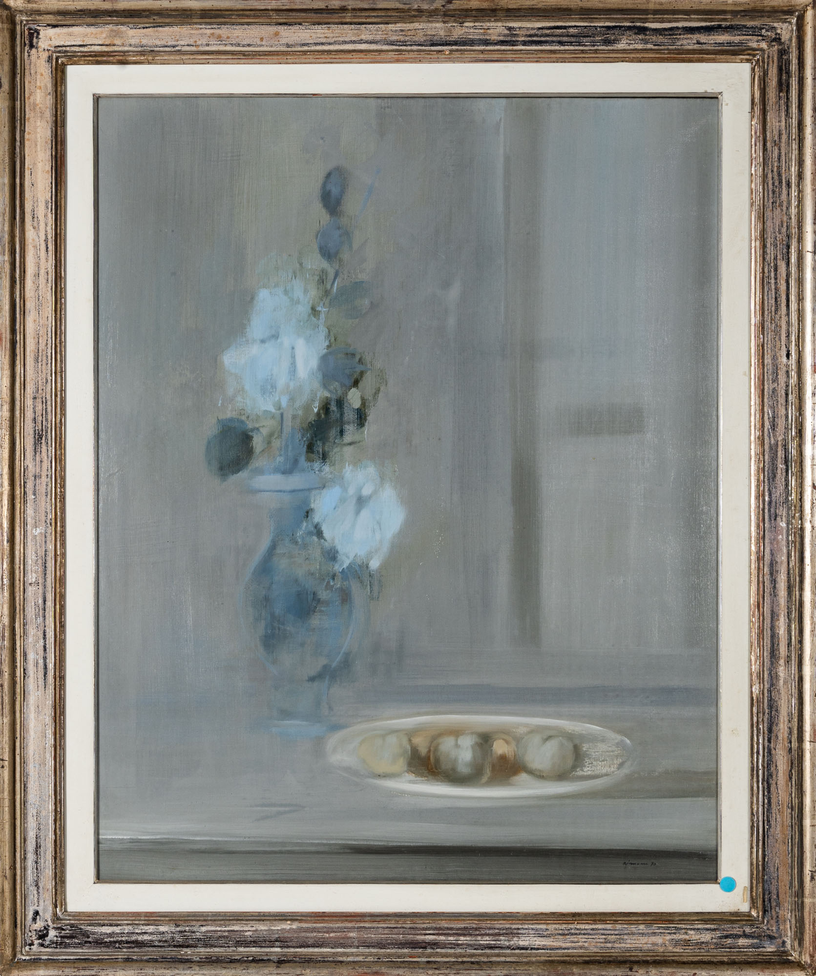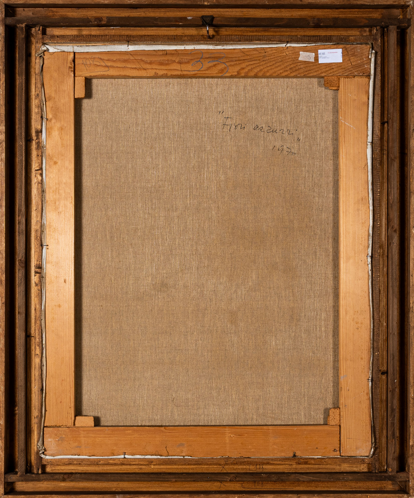 GIUSEPPE AJMONE(1923 - 2005)Fiori azzurri1970Olio su tela92,5 x 73,5 cmFirmato e datato in basso a destraData e titolo al retroPROVENIENZA:Collezione privata, Biella
