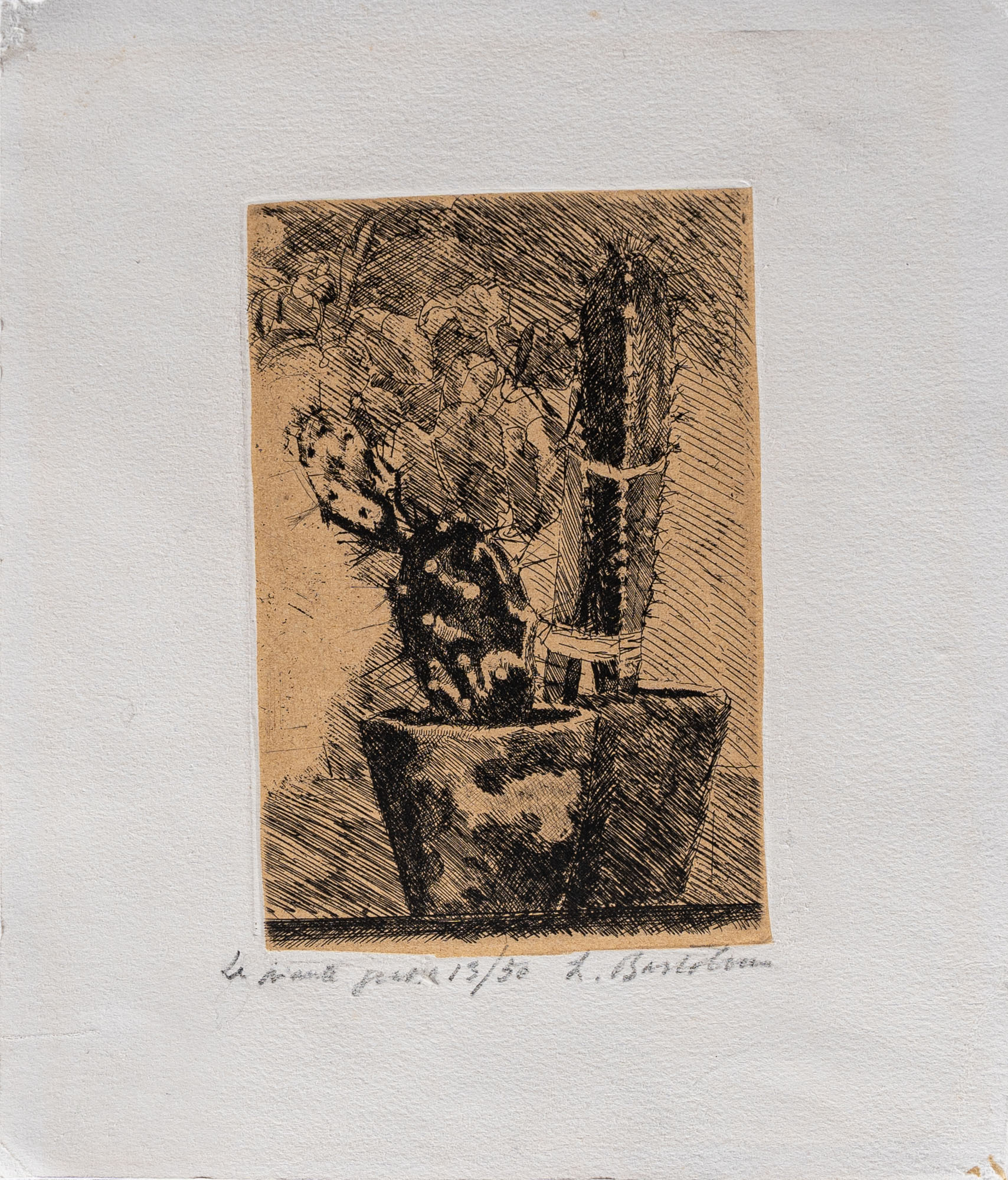 LUCIANO BARTOLINI(1948 - 1994)Le piante grasseAnni '30Acquaforte, es. 13/5018,5 x 12,5 cm (lastra)29 x 24,5 cm circa (foglio)Firmata, numerata e titolata a matita in basso al centroOpera accompagnata da dichirazione di provenienza della Galleria Basile Arte Contemporanea, PalermoPROVENIENZA:Galleria Basile Arte Contemporanea, PalermoCollezione privata, Padova