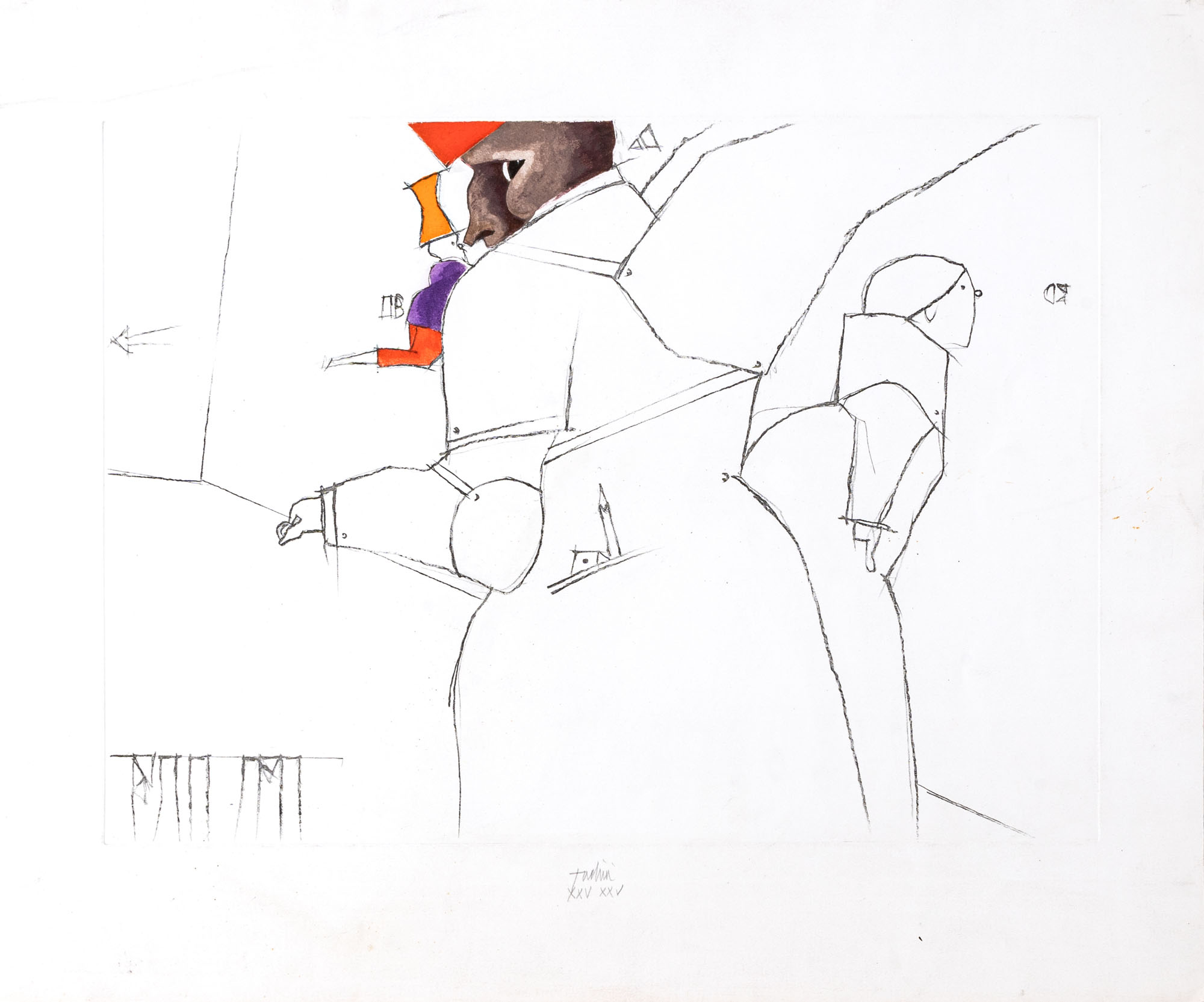 EMILIO TADINI(1927 - 2002)Senza titoloAcquaforte e Acquatinta, es. XXV/XXV50 x 68 cm (lastra)69 x 82,5 cm (foglio)Firmata e numerata a matita in basso al centroPROVENIENZA:Collezione privata, Monza