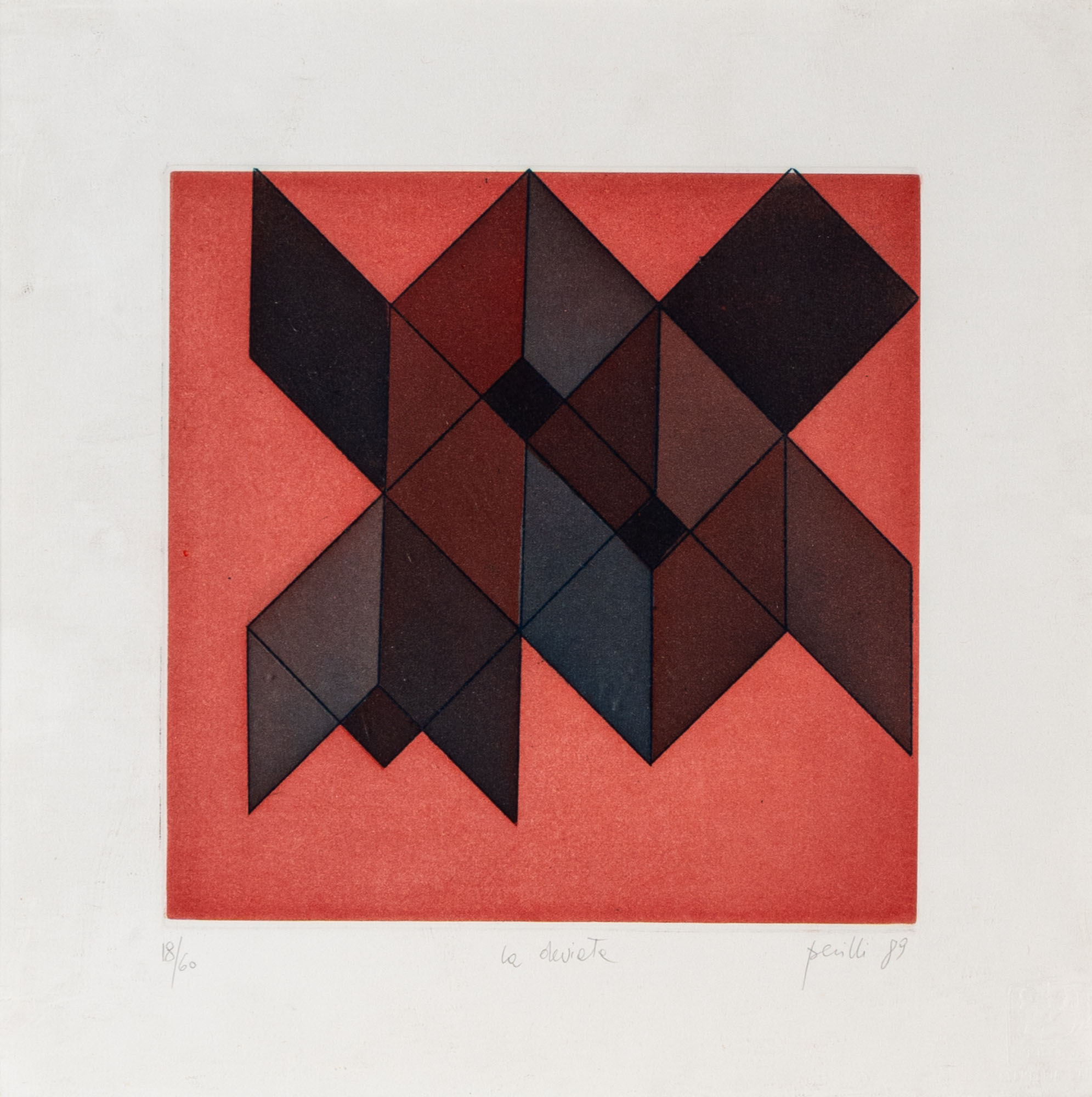 ACHILLE PERILLI(1927 - 2021)La deviata1989Acquaforte, es. 18/6030 x 29,5 cm (foglio)19,8 x 19,5 cm (lastra)Firmata e datata a matita in basso a destra, numerata in basso a sinistra e titolata in basso al centroPROVENIENZA:Collezione privata, Milano