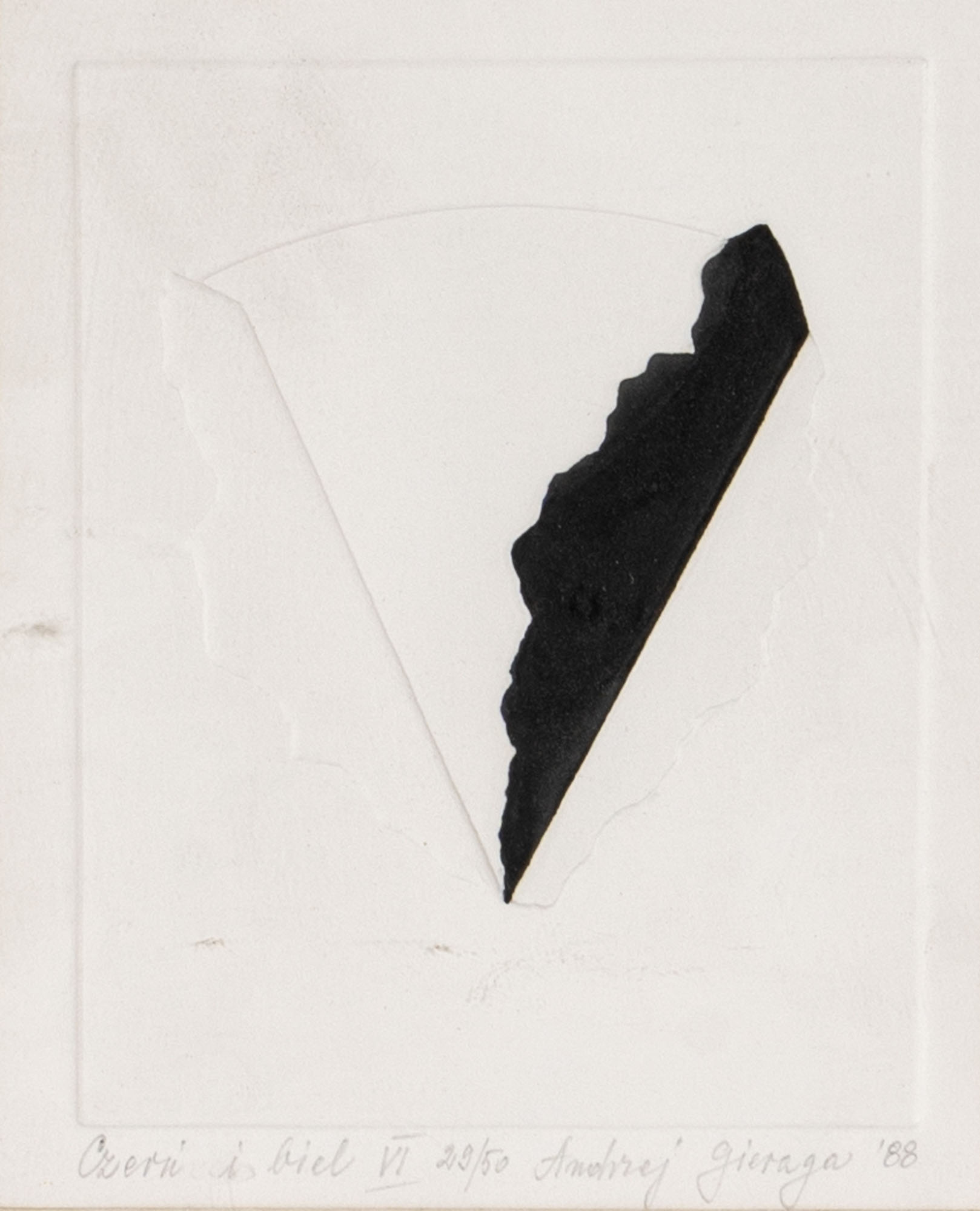 ANDRZEJ GIERAGA(1934)Czern i Biel VI1988Acquaforte, es. 29/5024 x 20 cm circa (foglio)15 x 12 cm (lastra)Firmata, datata, numerata e titolata a matita in basso al centroPROVENIENZA:Collezione privata, Milano