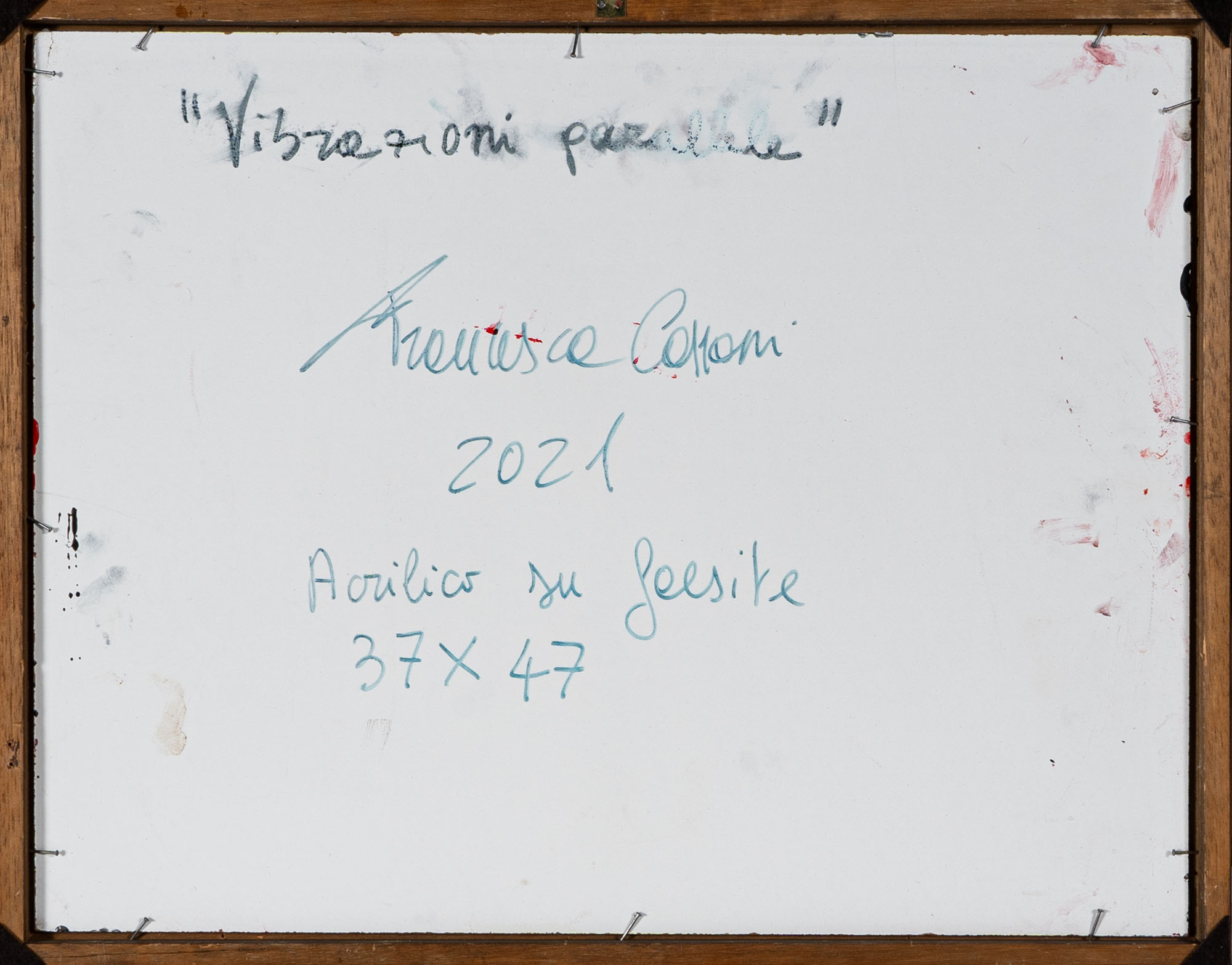 FRANCESCA CASSONI(1955)Vibrazioni parallele2021Acrilico su faesite37 x 47 cmFirma, data e titolo al retroPROVENIENZA:Collezione privata, Milano