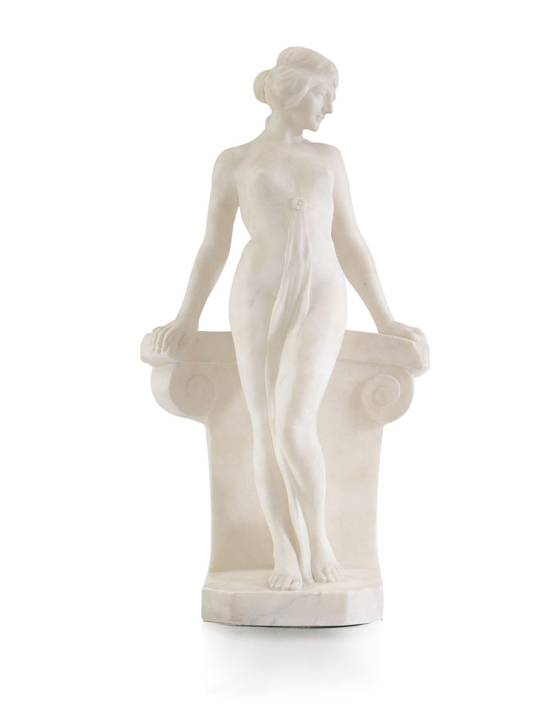 Scultura Liberty in marmo bianco, alt. cm 47,8, firma incisa al retro.