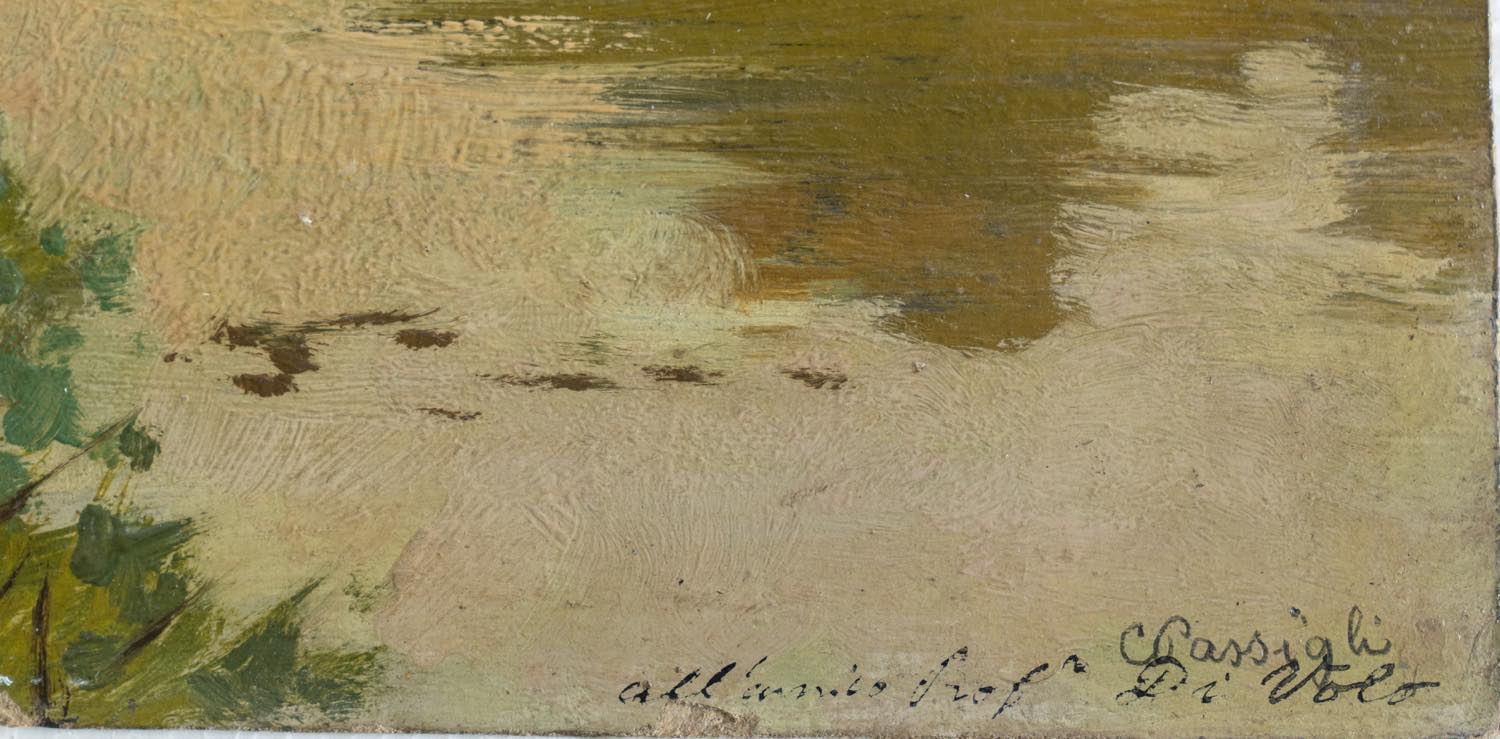 Olio su cartone, presenta in basso a destra firma e dedica a cura dell’artista, H cm 24x35. Provenienza: collezione privata - Bologna