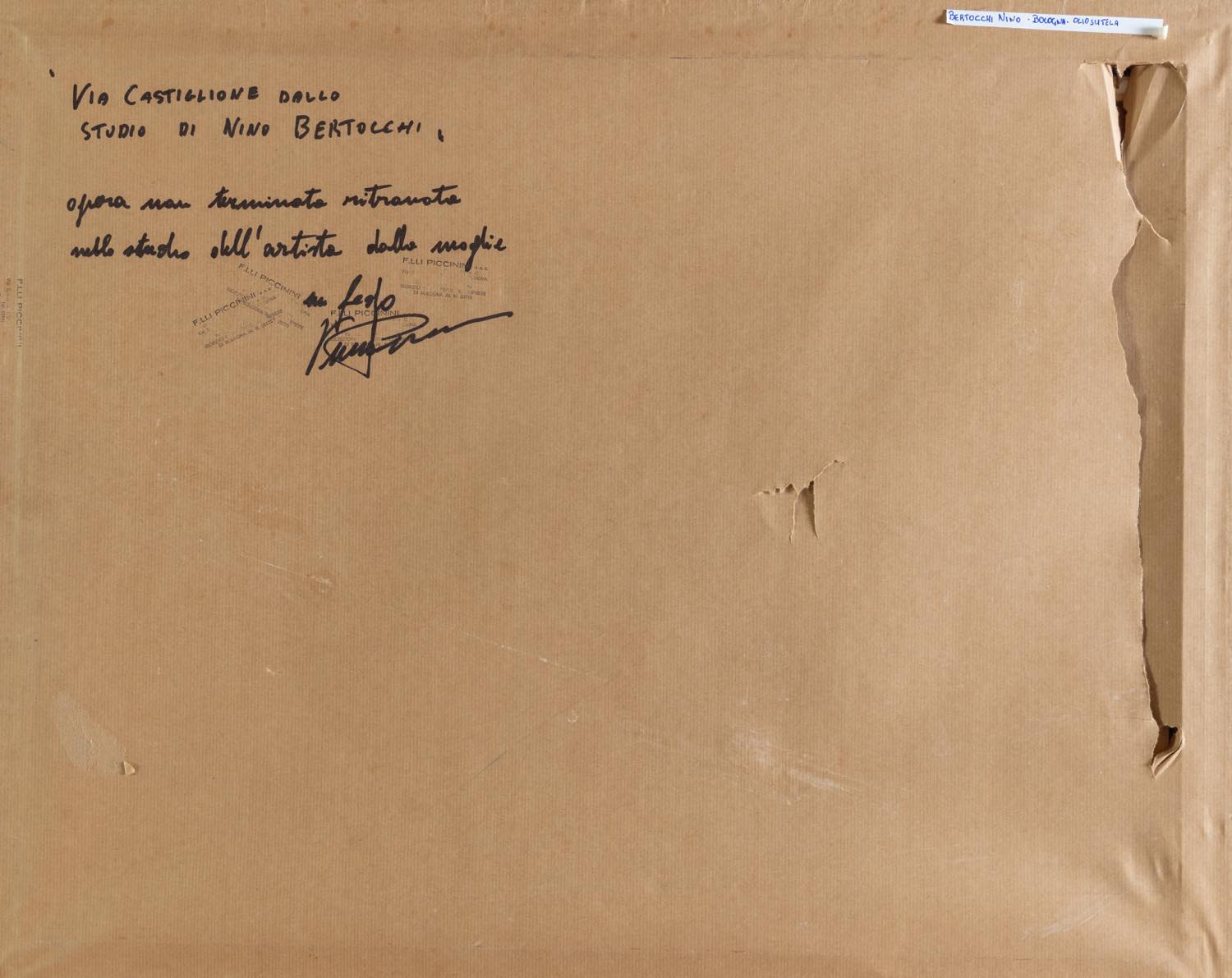 Olio su cartone telato, reca al retro titolo e iscrizione a cura della moglie dell’artista e timbri della Galleria Piccinini - Bologna, H cm 54x70 - con cornice H cm 63.5x79. Provenienza: Galleria Piccinini - Bologna; Collezione privata - Bologna.