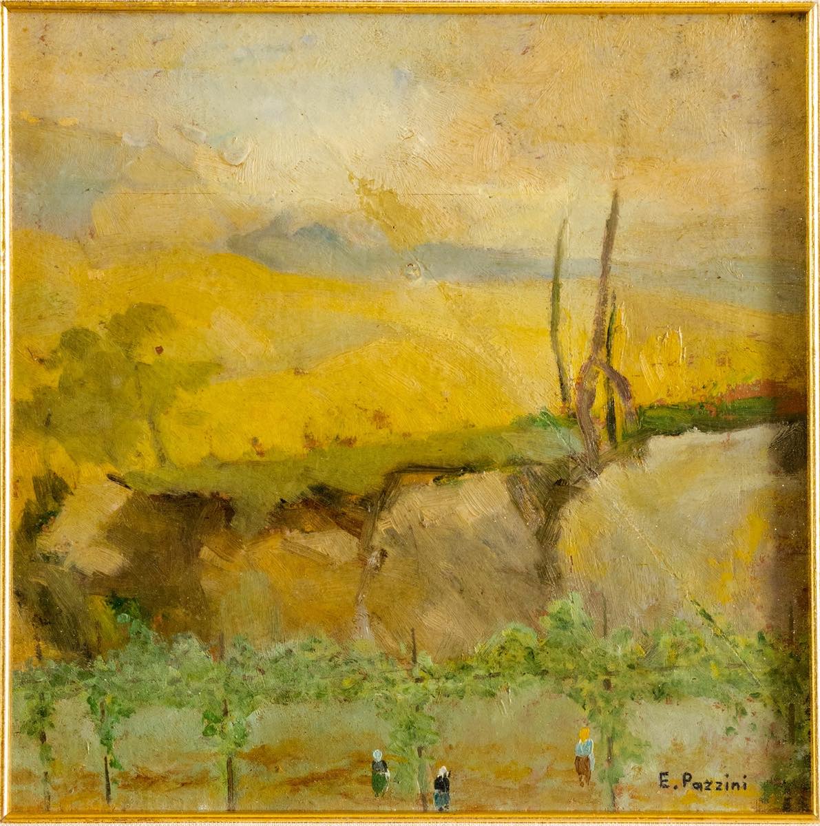 Edoardo Pazzini ( Verucchio 1897 - Rimini 1967 ), “Paesaggio”.