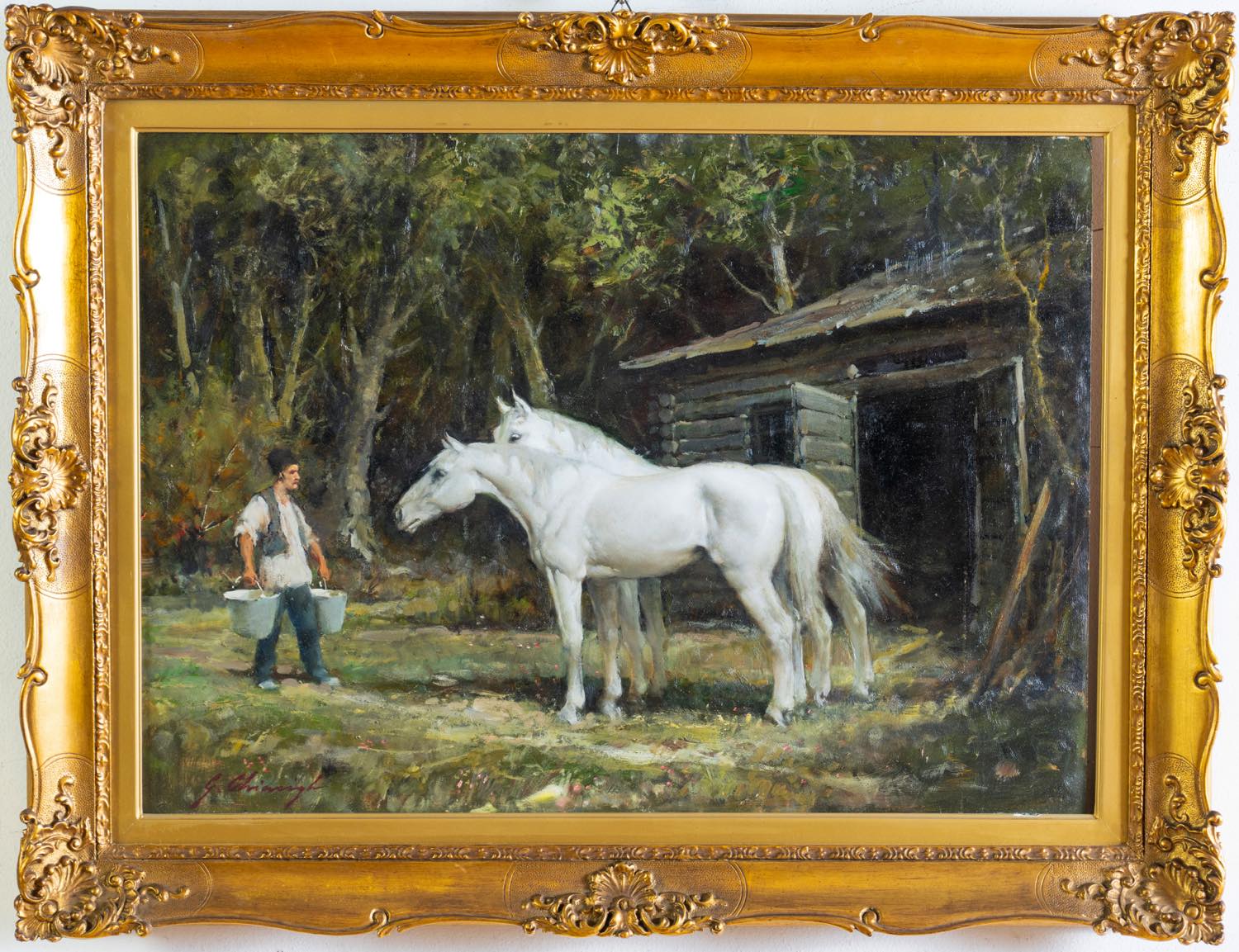 Giuseppe Chiacigh (Vladikavkaz 1895 - Trieste 1967) “Stalliere con cavalli”.