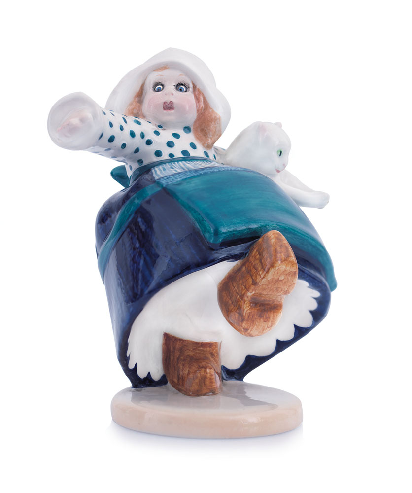 "BIMBA CON GATTO" IN CERAMICA, LENCI, S.VACCHETTI 1932, decoro policromo; reca data 22-9-1932.