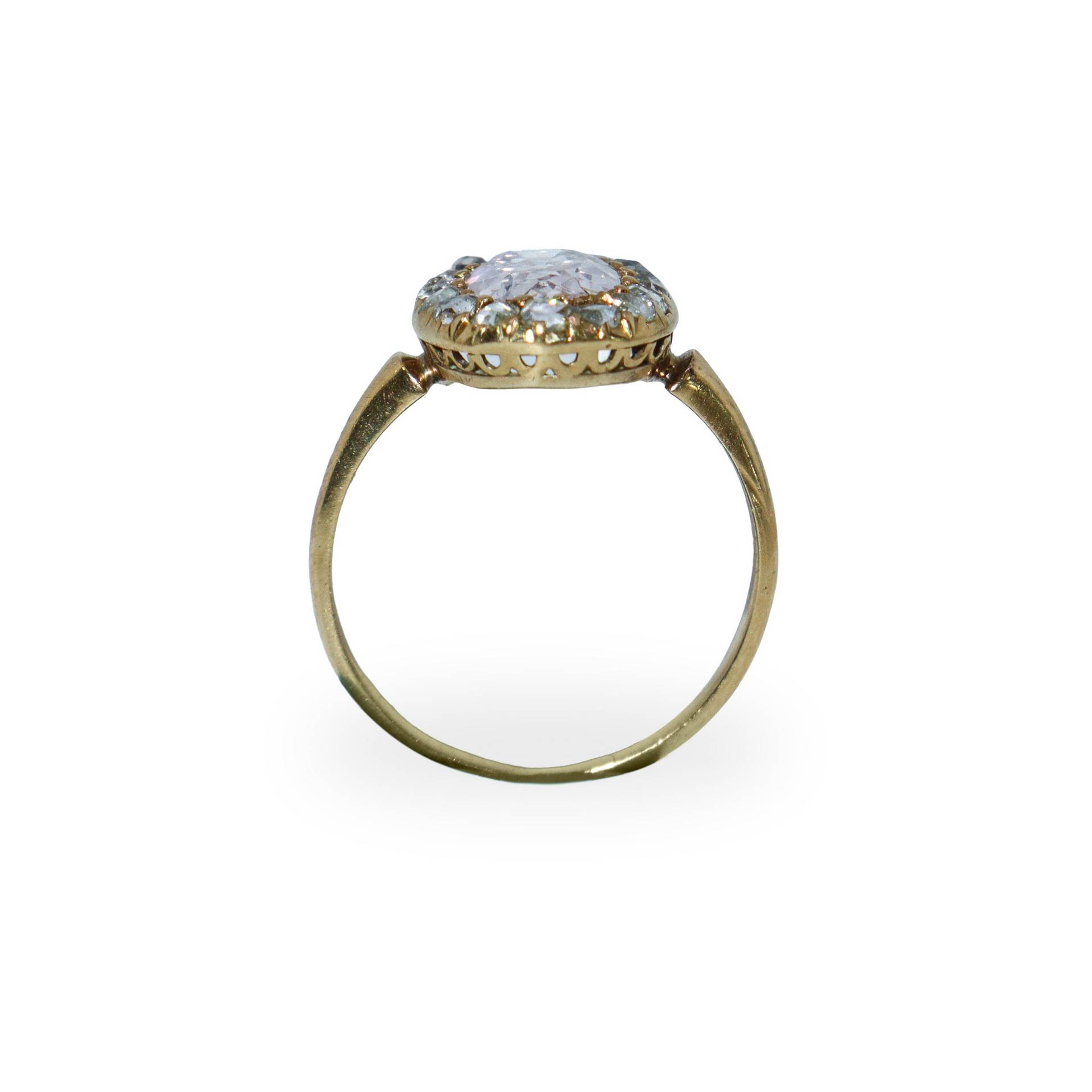 Anello in oro giallo con diamante light fancy pink lievemente rosato taglio antico