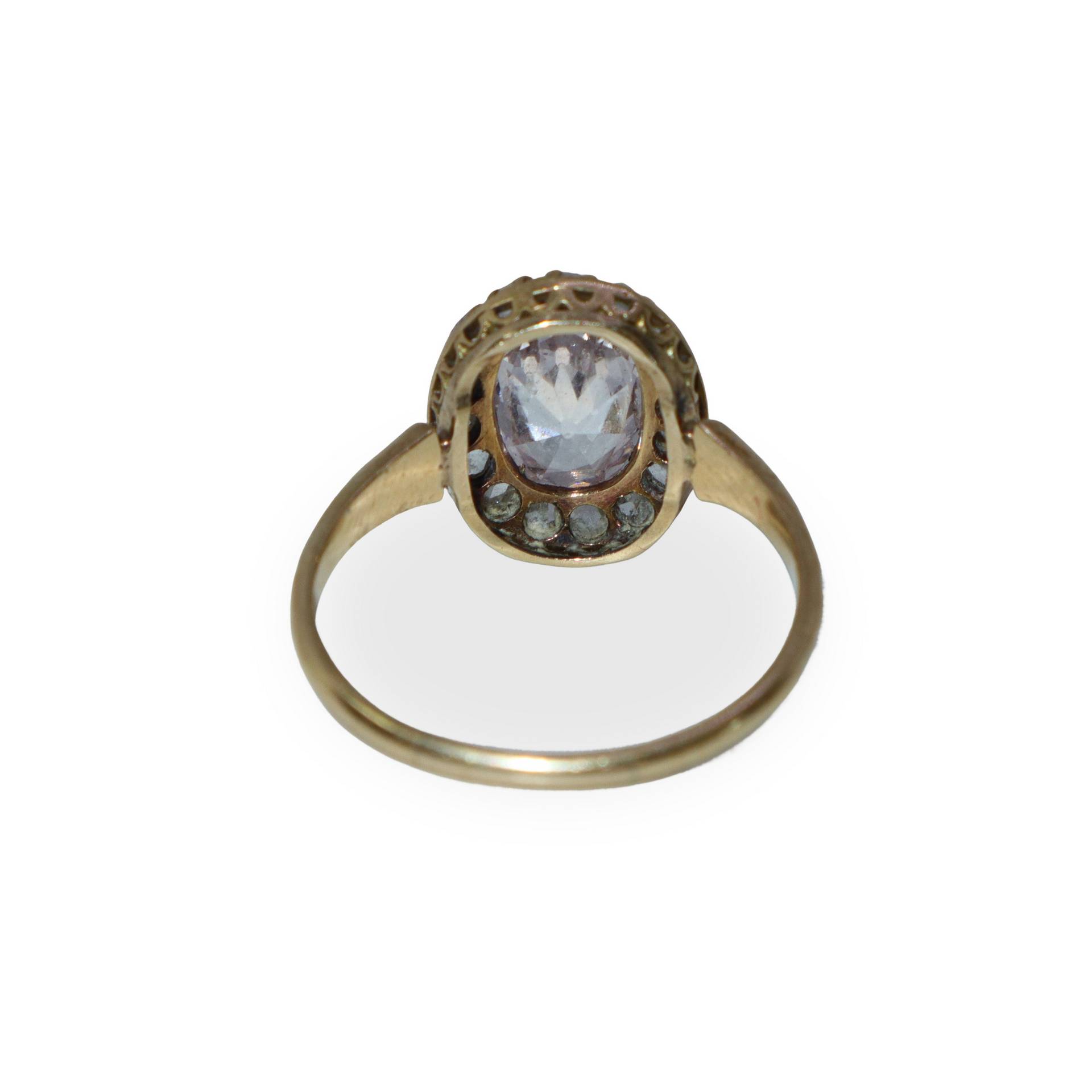 Anello in oro giallo con diamante light fancy pink lievemente rosato taglio antico Diamante rosa ct mis. ind. 1,05 diamanti naturali ct. mis. ind. 0,60