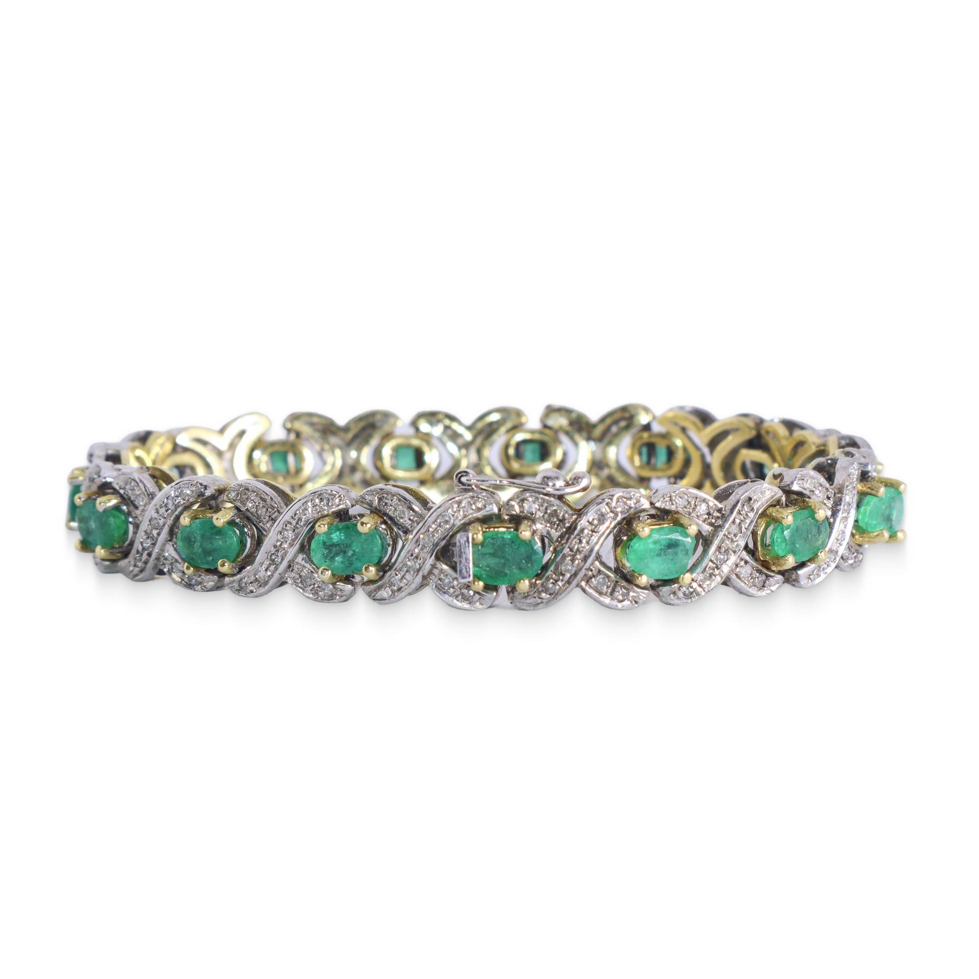 Bracciale tennis in oro bianco e oro giallo con diamanti e smeraldi