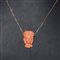Pendentif testa con tre volti in corallo rosa con catena in oro giallo 750