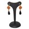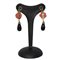 Orecchini a clip pendenti in onice, fiore in corallo rosa e brillanti gr. 11,5 cm 5,5 Punzone 14 KTPunzone 14 KT