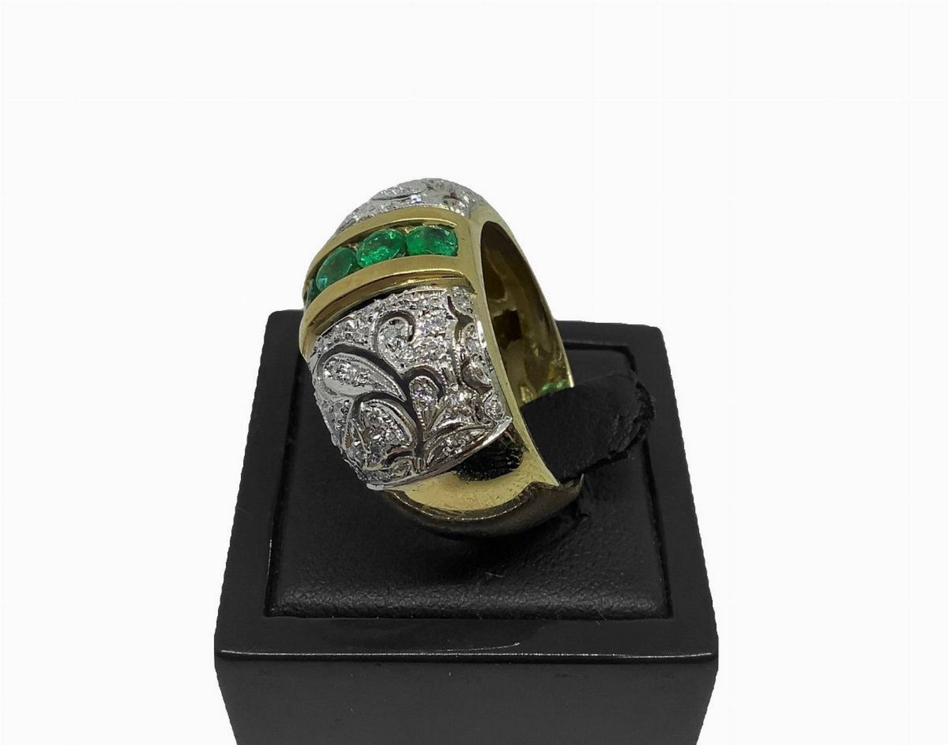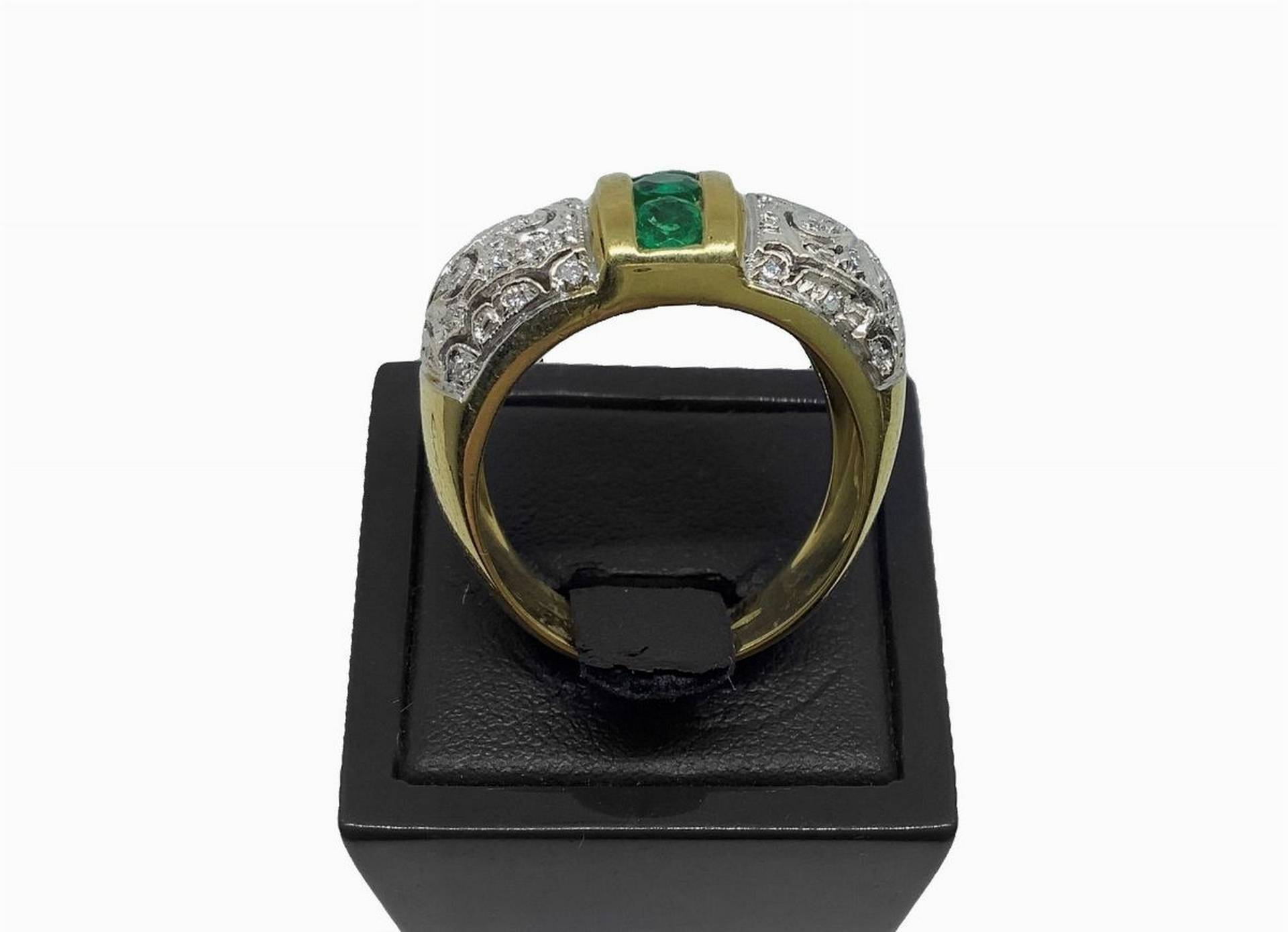 Anello in oro giallo con brillanti e smeraldi Brillanti ca 0.30 ct, smeraldi ca 0.50Brillanti ca 0.30 ct, smeraldi ca 0.50