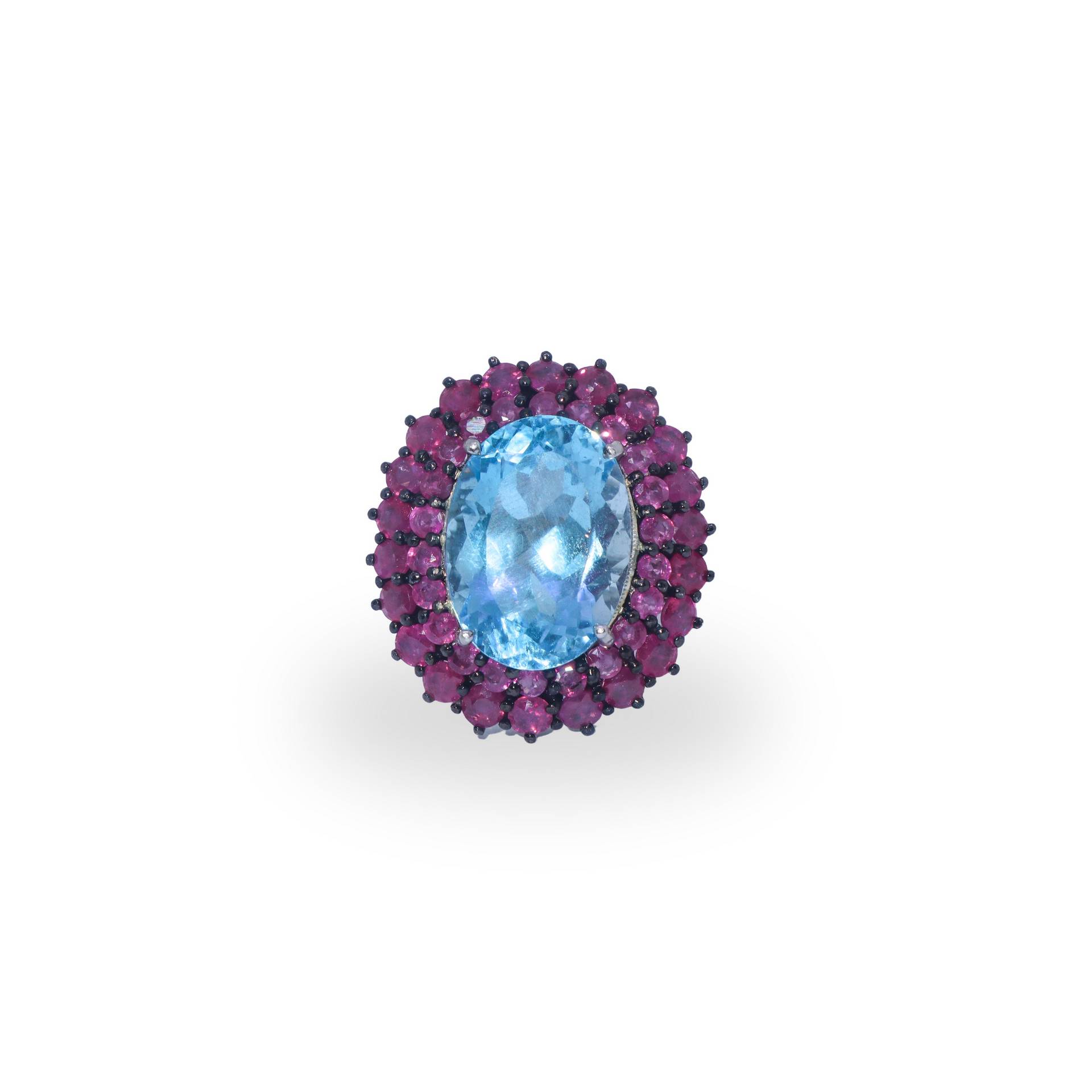 Anello in argento con topazio centrale e pietre gr 11,8 misura 17