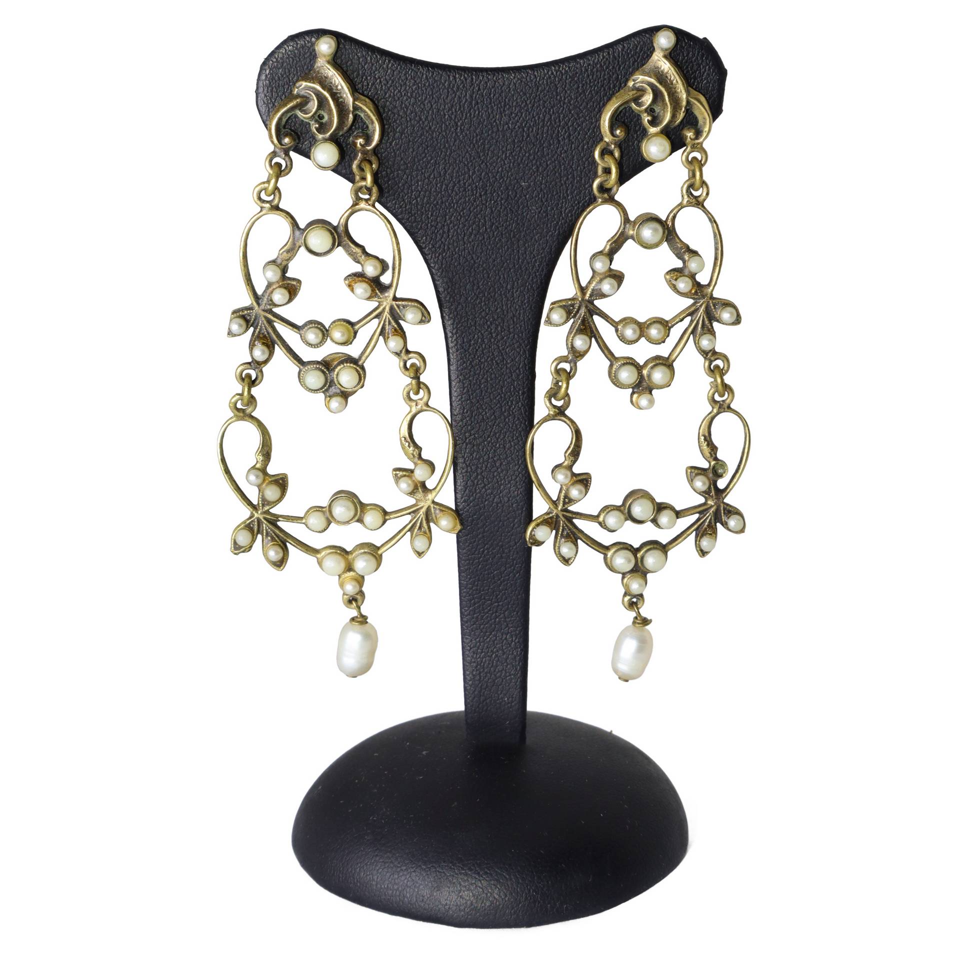 Lotto 197 | Orecchini alcozer pendenti dorati con perle