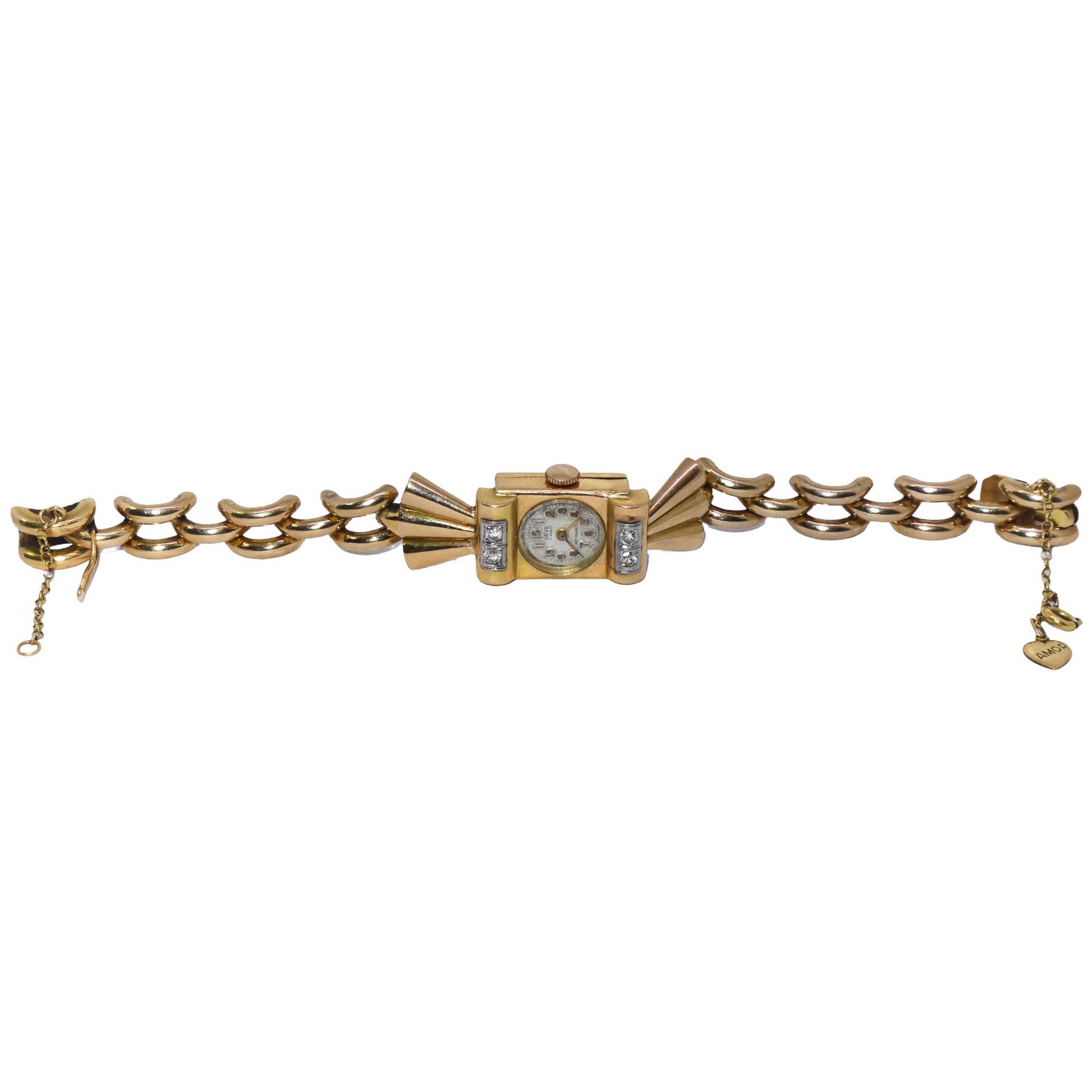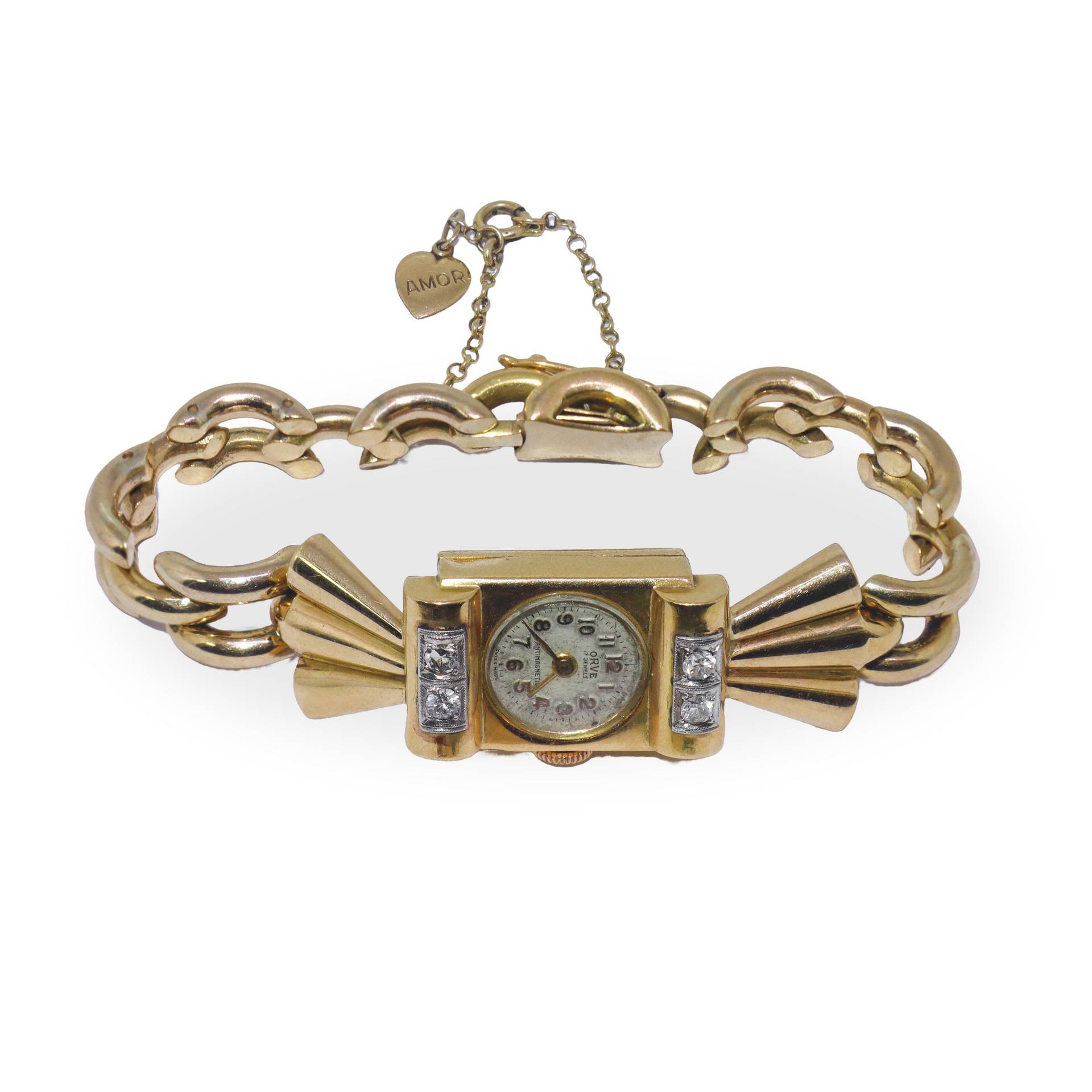 Orologio da donna in oro con diamanti taglio brillante. Maglia a bracciale diametro cm 3, gr 32,3 Chiusura di sicurezza. Da revisionare.Chiusura di sicurezza. Da revisionare.