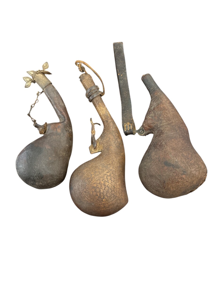 Tre bulbi per polvere XIX scolo pelle e cuoio 22 cm