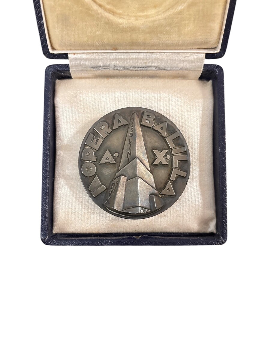 Medaglia coniata in occasione del decimo anniversario della fondazione dell'Opera Balilla. In bronzo. In confezione originale.