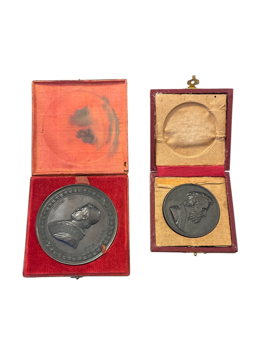 La seconda è una medaglia massimo moudlo per la costruzione del ponte di Ariccia. Diametro 82 mm. In astuccio.