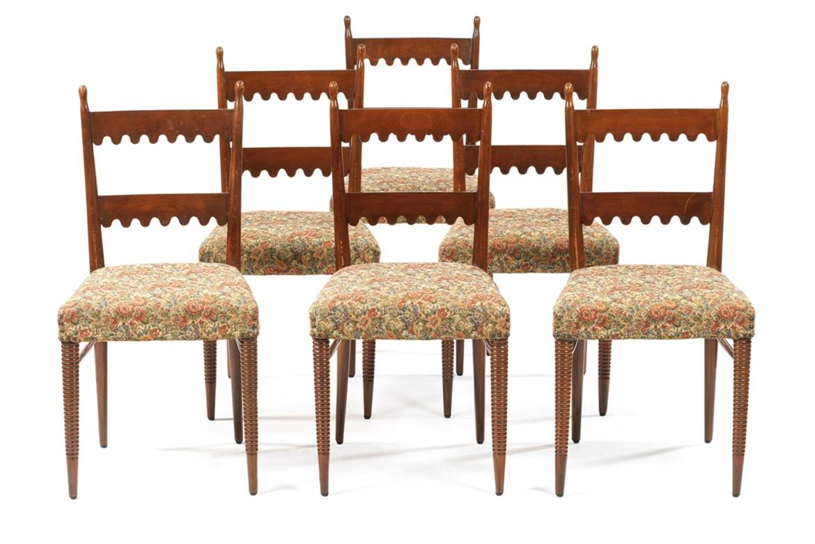 Sei sedie Produzione: Colli, 1950 Noce, rivestimento in cotone cm 92 h x 40 x 45