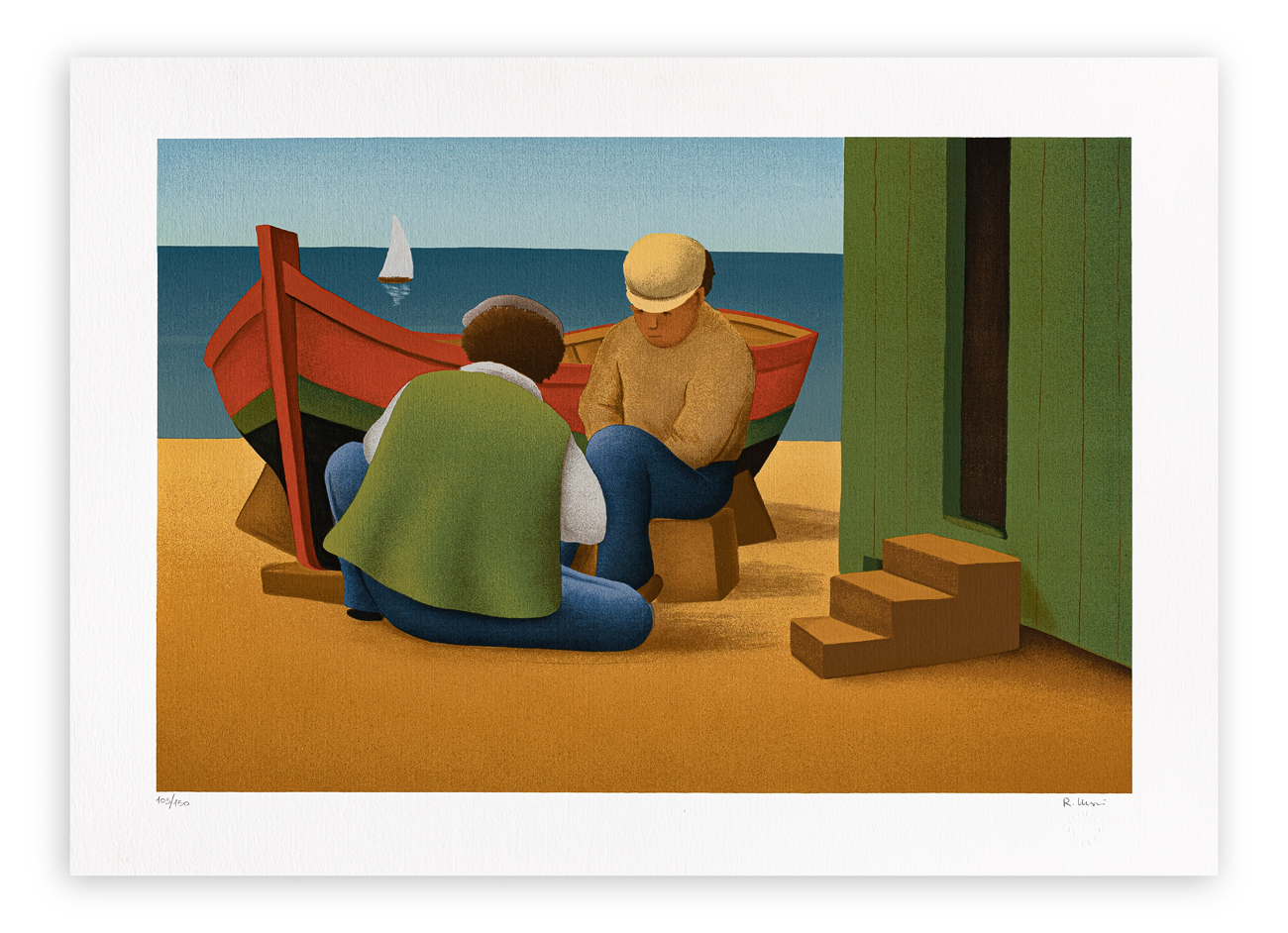 Firma e numerazione (Esemplare 105/150) a matita al fronte