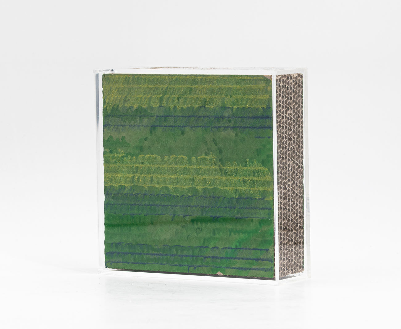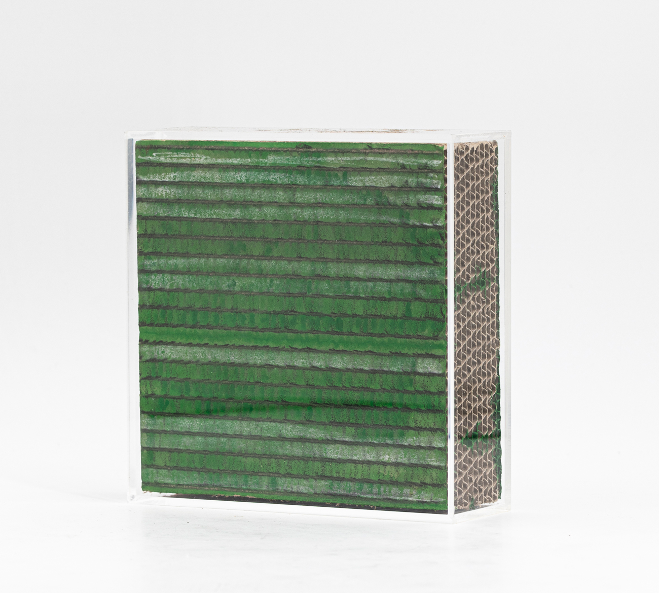 Opera entro teca di plexiglass, dipinta sia sul fronte che sul retro