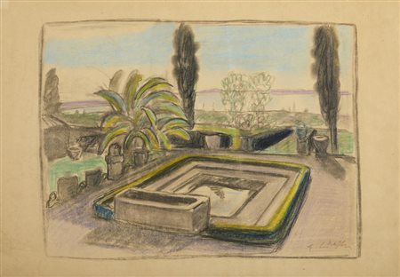 CHAPLIN ELISABETH (1890 - 1982) SENZA TITOLO . tecnica mista su carta. Cm 61,70 x 42,50. firma.